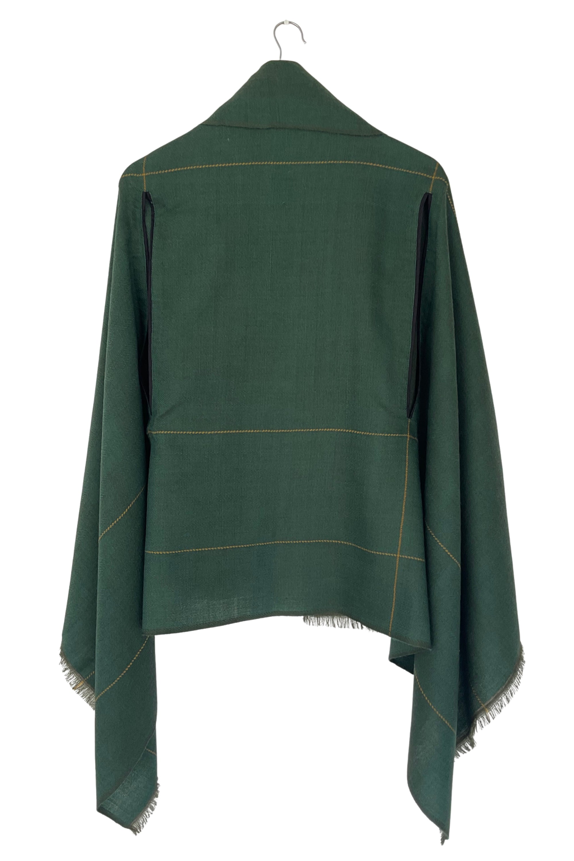 In a juniper green with minimal design details, this cape exudes timeless elegance. Named after Artemis, the Greek Goddess of wilderness and hunting, this cape is flattering for all sizes, it blends modern European design with artisanal handloom craft.