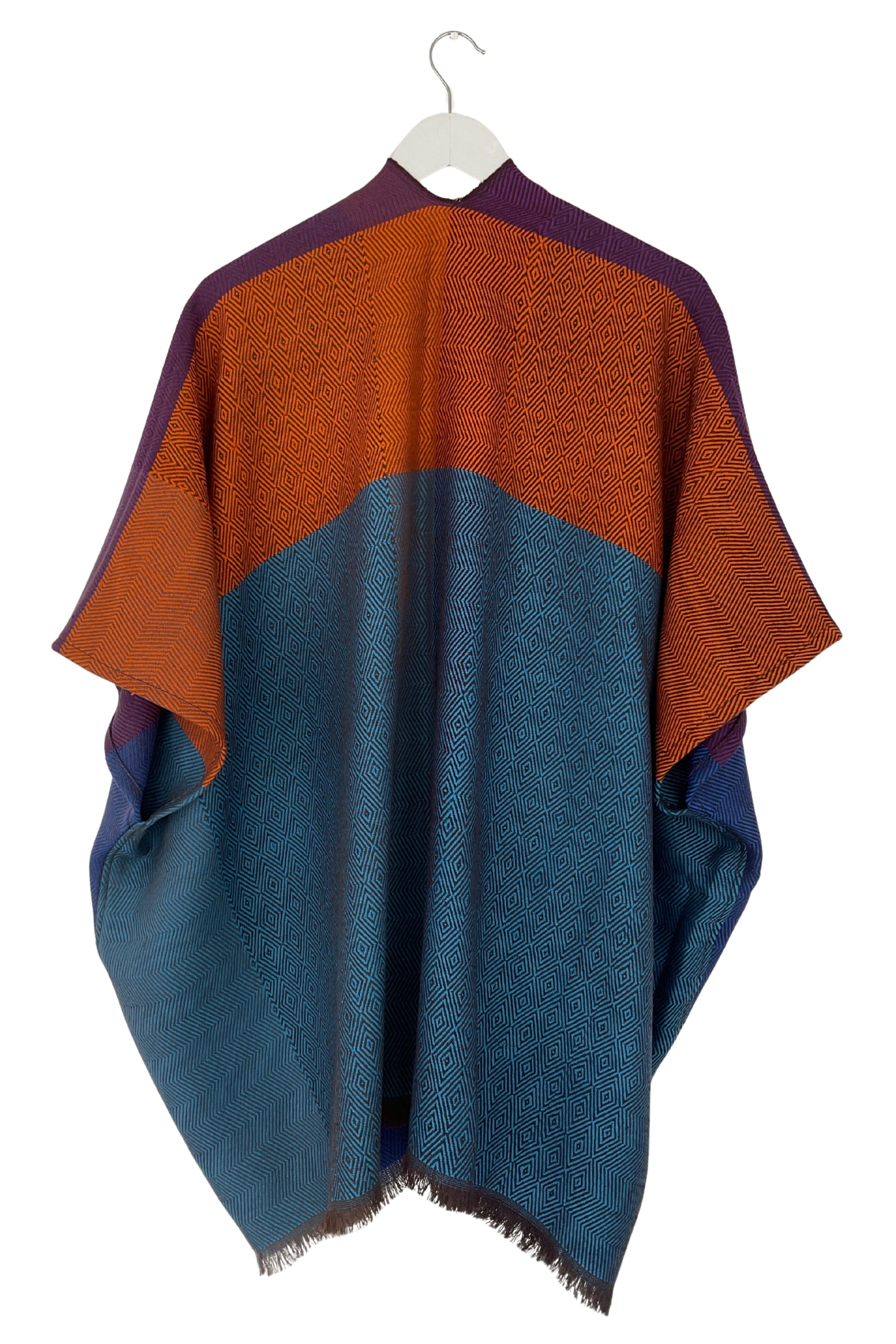 The Wool Poncho Trudi is a wearable canvas of color, texture, and craft. Inspired by Trudi, the mother of our Julahas Community Manager, this silhouette is an ode to her unique personal style. Handcrafted by women artisans of Dev Bhumi using 100% wool, each piece uses playful colours woven to create a free-size garment that is both stylish and warm.