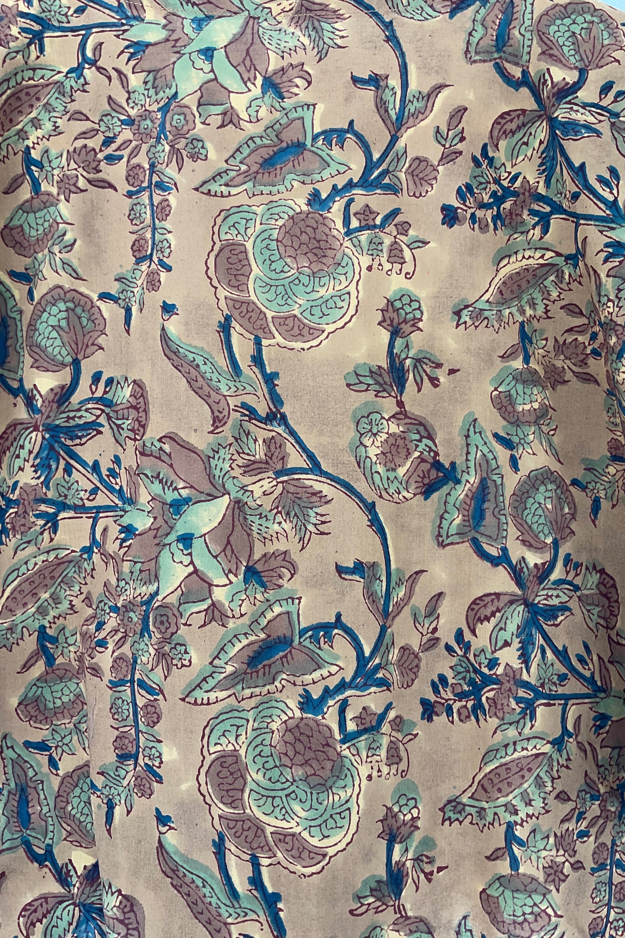 Handcrafted in small batches from on-stock, hand block-printed fabrics, each piece is made using what already exists to reduce waste and honor artisanal traditions. Featuring a delicate floral block print, this top blends timeless style with mindful fashion—designed to adapt beautifully to your body and your day.