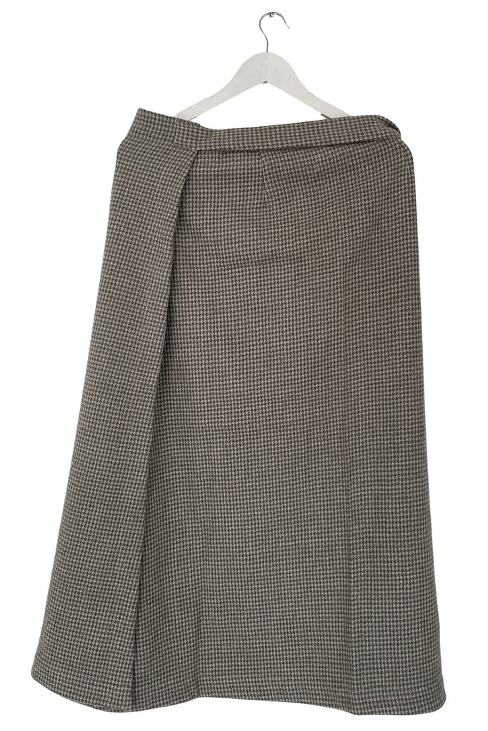 The Wool Wrap Skirt Cocoon Maxi in Grey Neutral combines warmth, elegance, and everyday ease. Handwoven by the skilled artisans of Bhuttico Weavers, it features a timeless houndstooth pattern that adds subtle texture and sophistication.