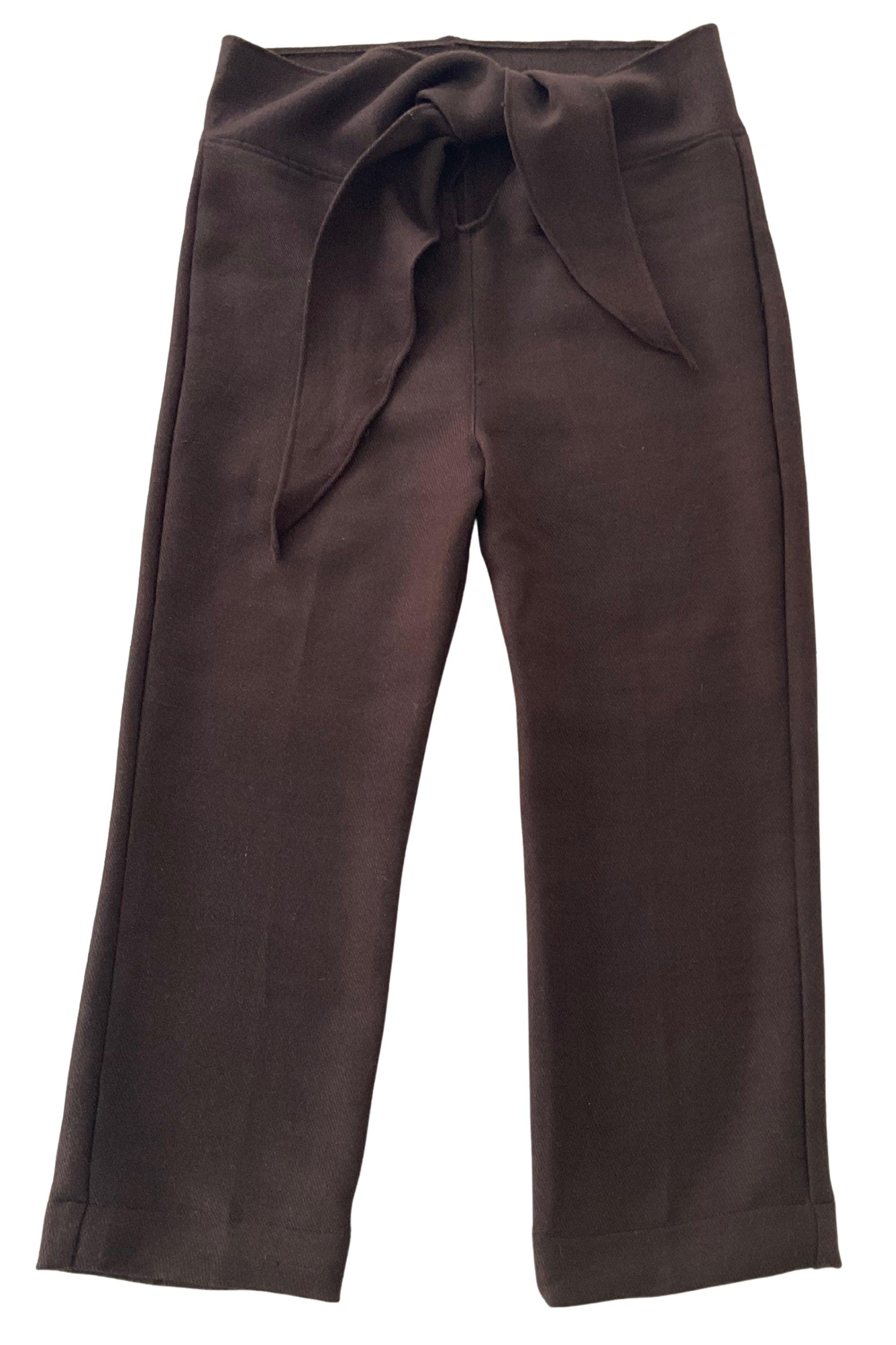 Our Highland Trail wool wrap pants feature a relaxed, tapering silhouette with a high waist and front knot closure that allows for a fully adjustable fit. Designed as one size, they can be tied and styled to suit different body shapes and waist heights. Handwoven detailing adds subtle texture, while the fluid construction ensures comfort and ease of movement. A versatile piece that blends modern wearability with artisanal character. Fits up to size Large.