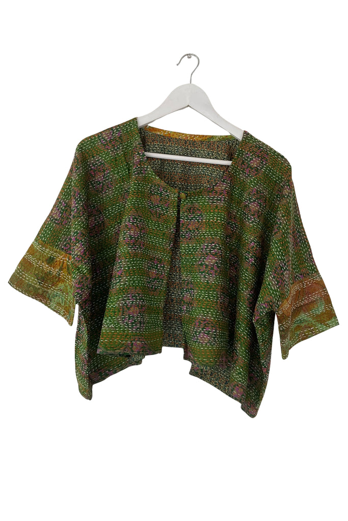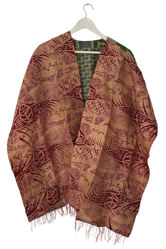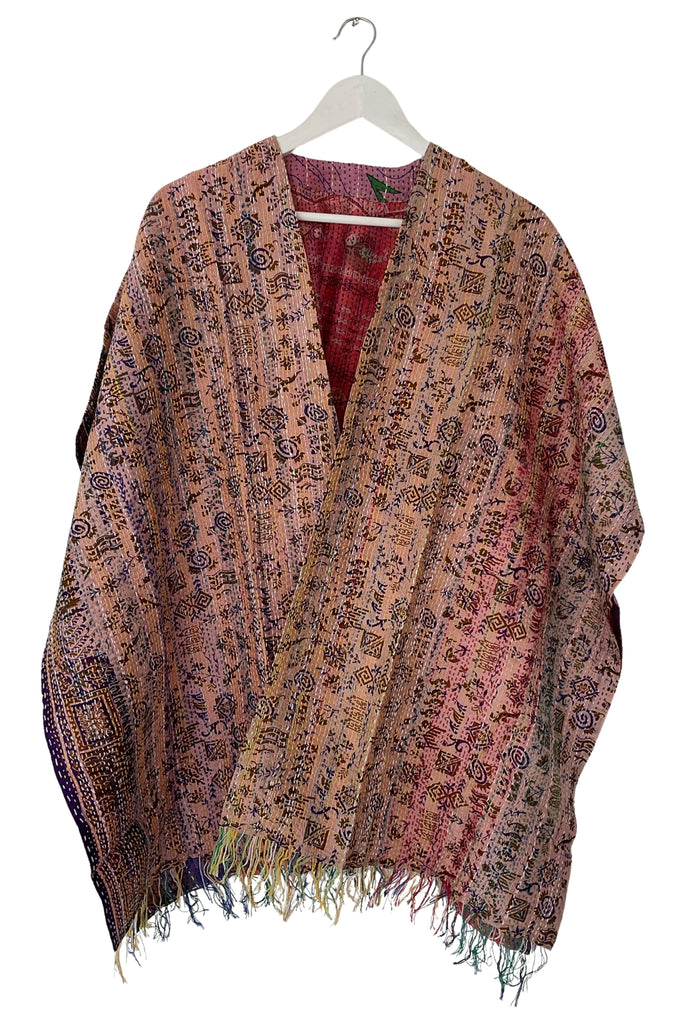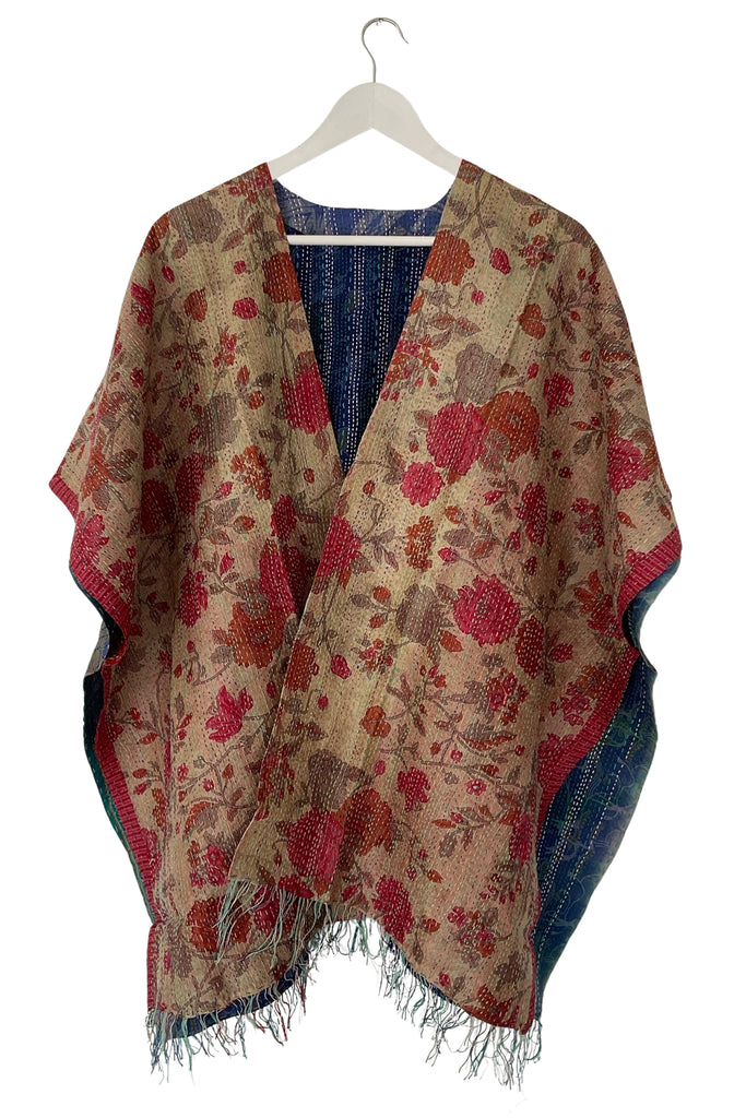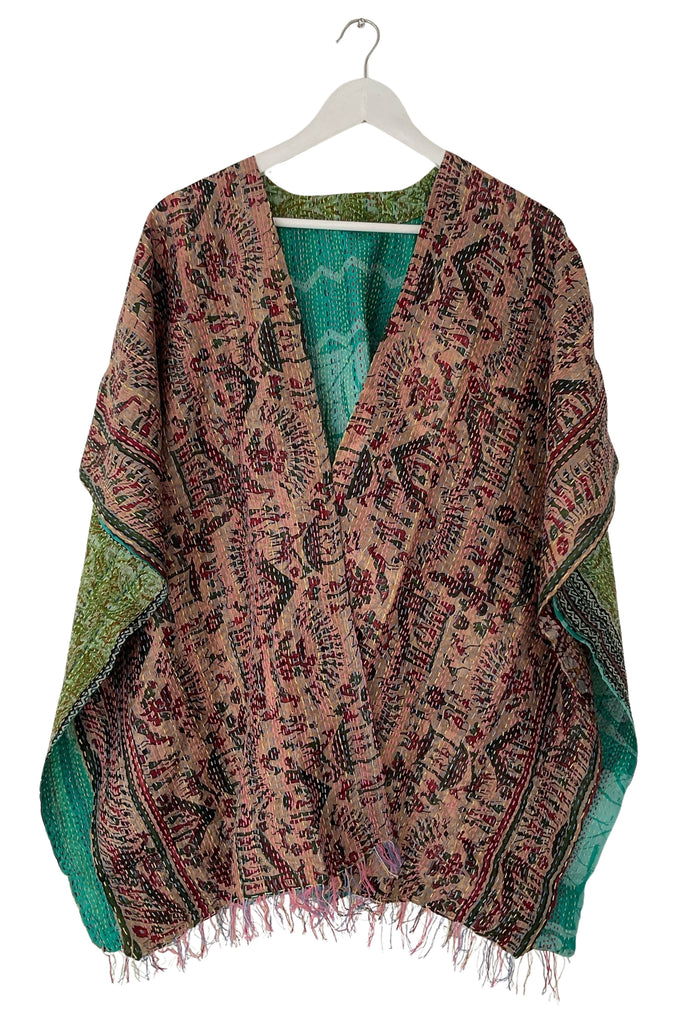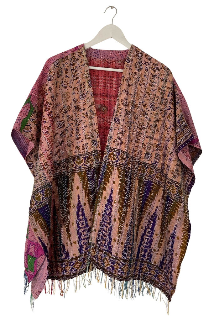 Our one-of-a-kind Stories Collection uses vintage saris used whole or patched together by women artisans in Barmer, Rajasthan using a kantha stitch. Each piece is unique, carrying with it the story of the women whose sari it was, and of the one who patched it together.