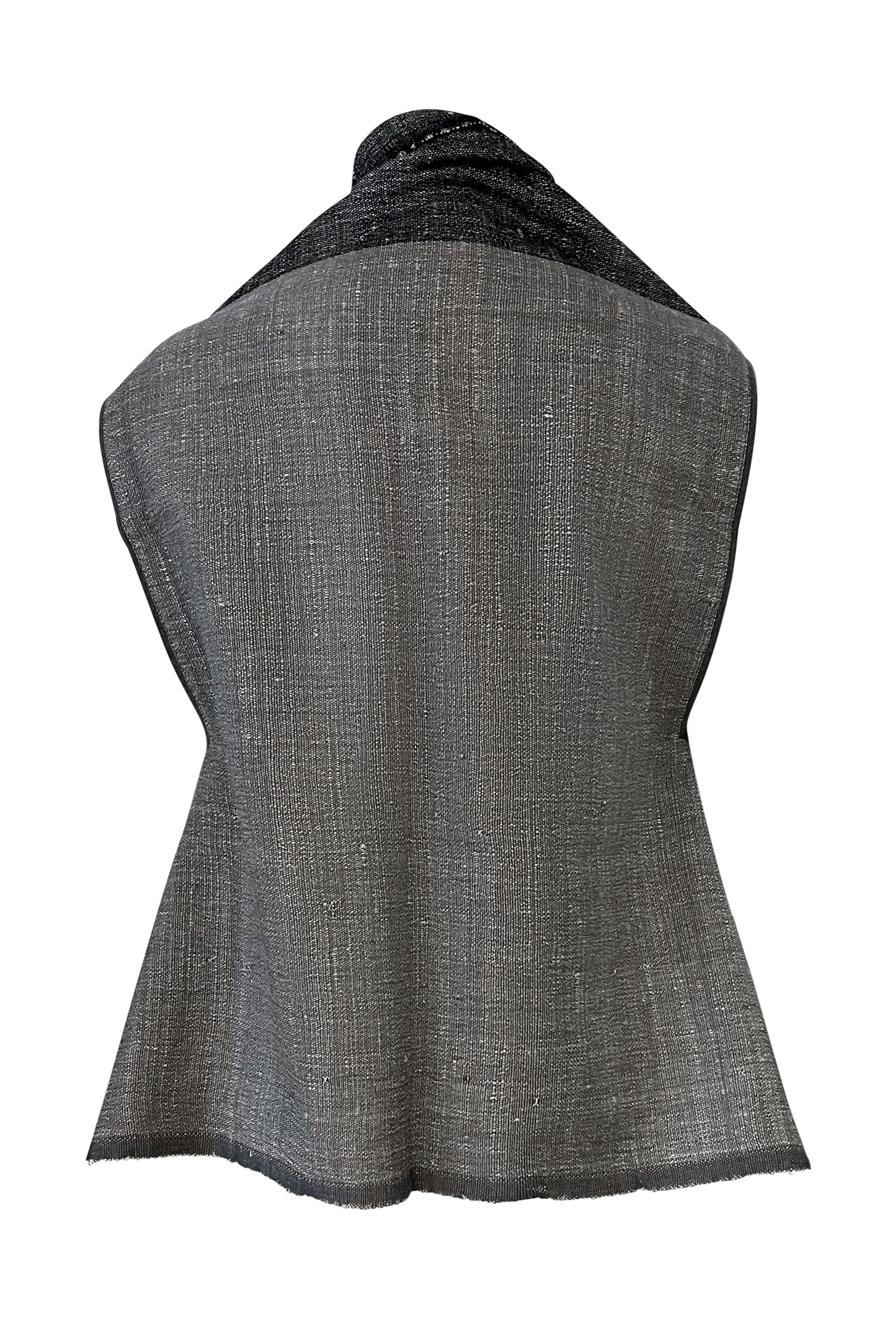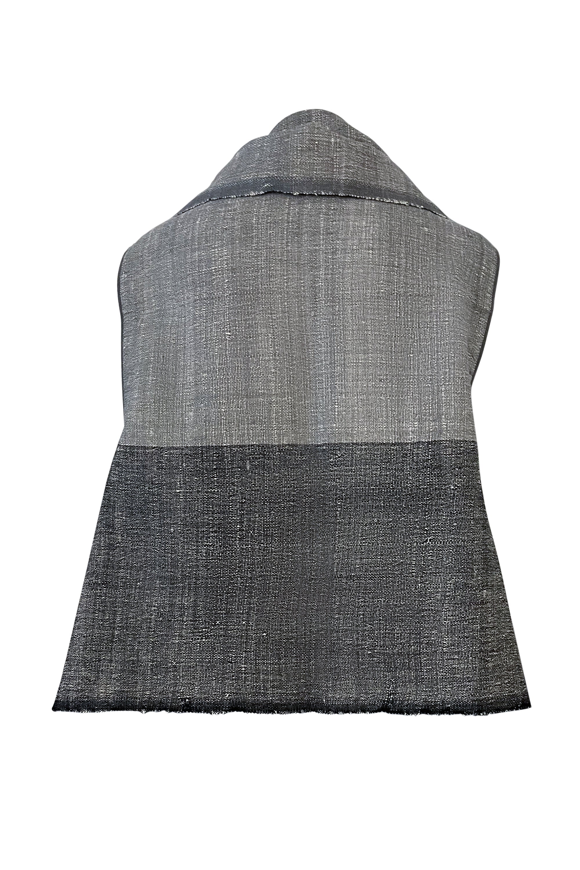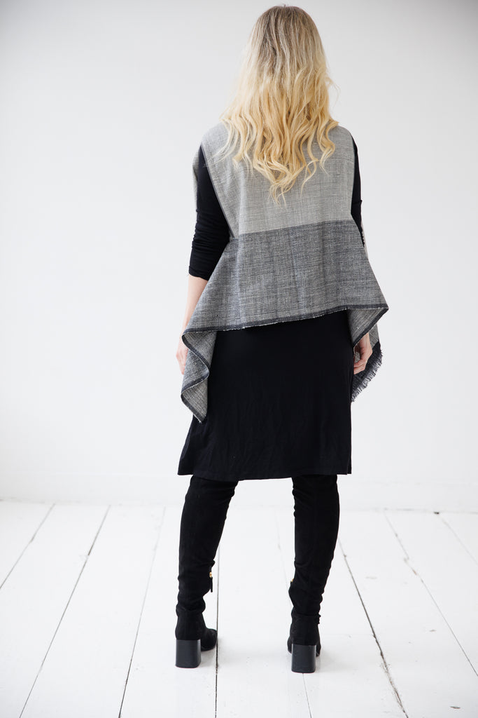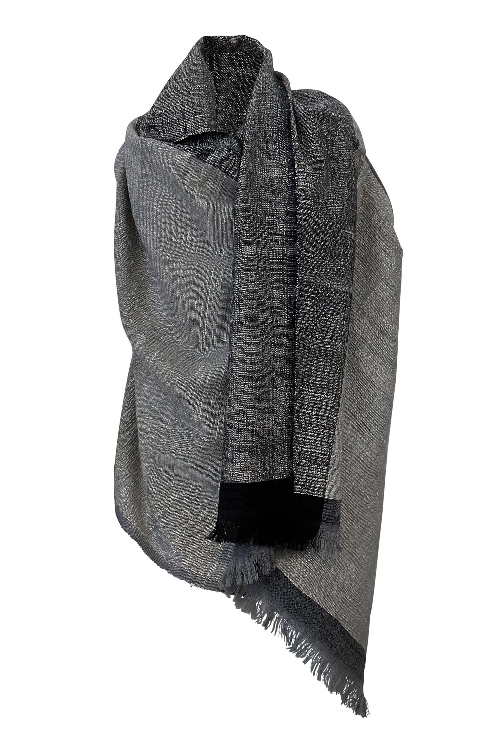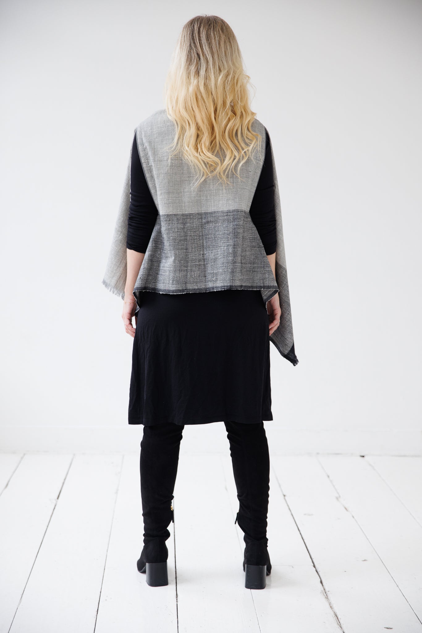 Handwoven from pure wool and handspun Ahimsa forest silk, it comes in Natural Undyed Silk, Black & Grey. Wear it open, wrapped, as a cowl, or even as a scarf, two accessories in one, perfect for both formal and casual settings.