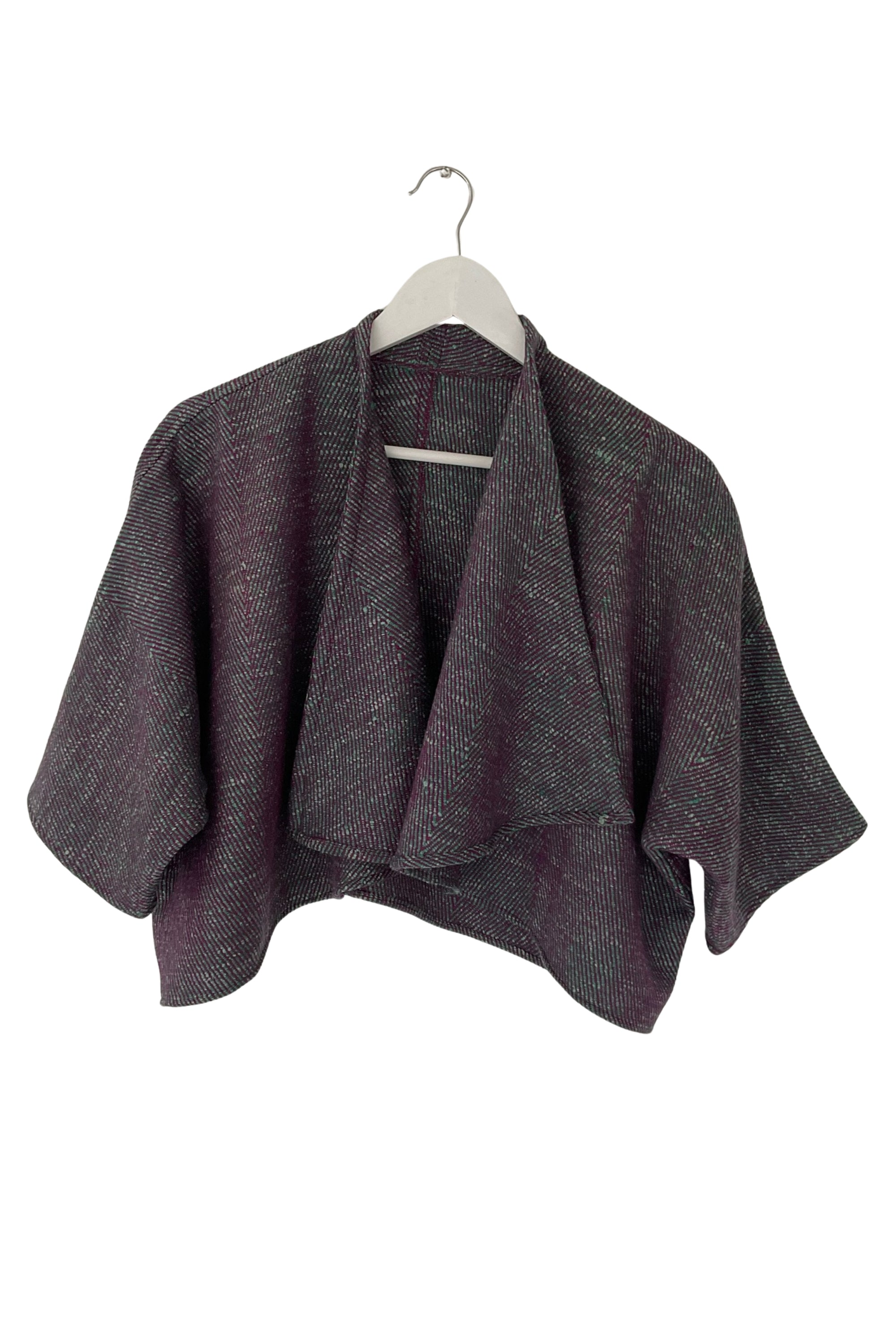 Woven with two different shades in the warp and weft using a twill weave, the fabric creates a subtle shadow effect that adds depth and makes the texture rich. Handcrafted in small batches by Bhuttico artisans in Himachal Pradesh, each bolero is woven on traditional looms using Woolmark-certified yarn and finished with care. Sustainable, durable, and modern — it’s designed to last.