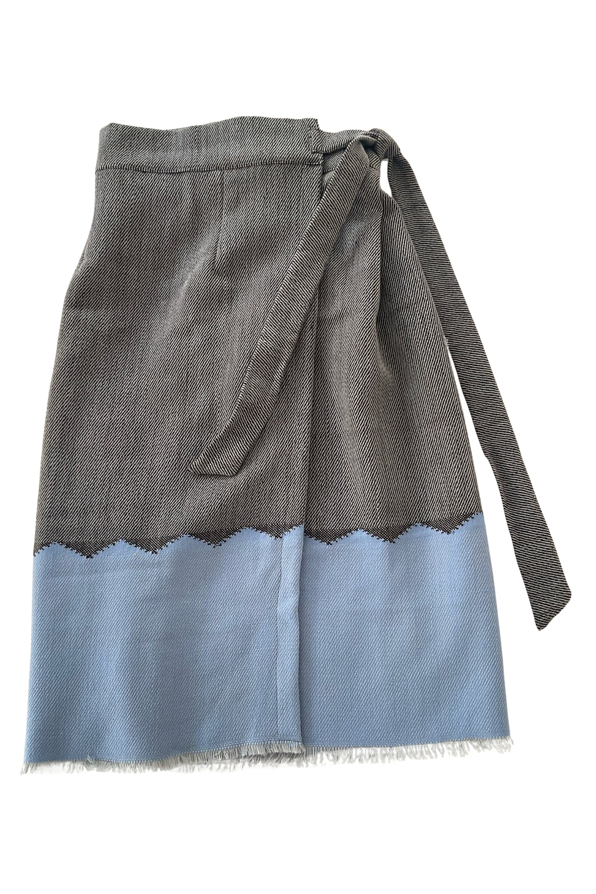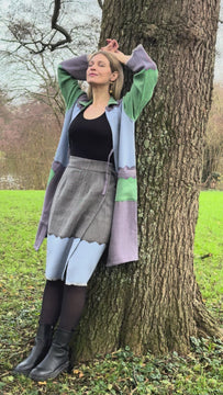 Inspired by the traditional Indian lungi, this handwoven wrap skirt features a fluid, straight silhouette designed to drape naturally around the body. Adjustable ties allow the fit to be customised at the waist and hips, offering ease, comfort, and freedom of movement. Crafted in wool, the piece balances practicality with everyday elegance—effortlessly transitioning from a layering essential to a statement silhouette.