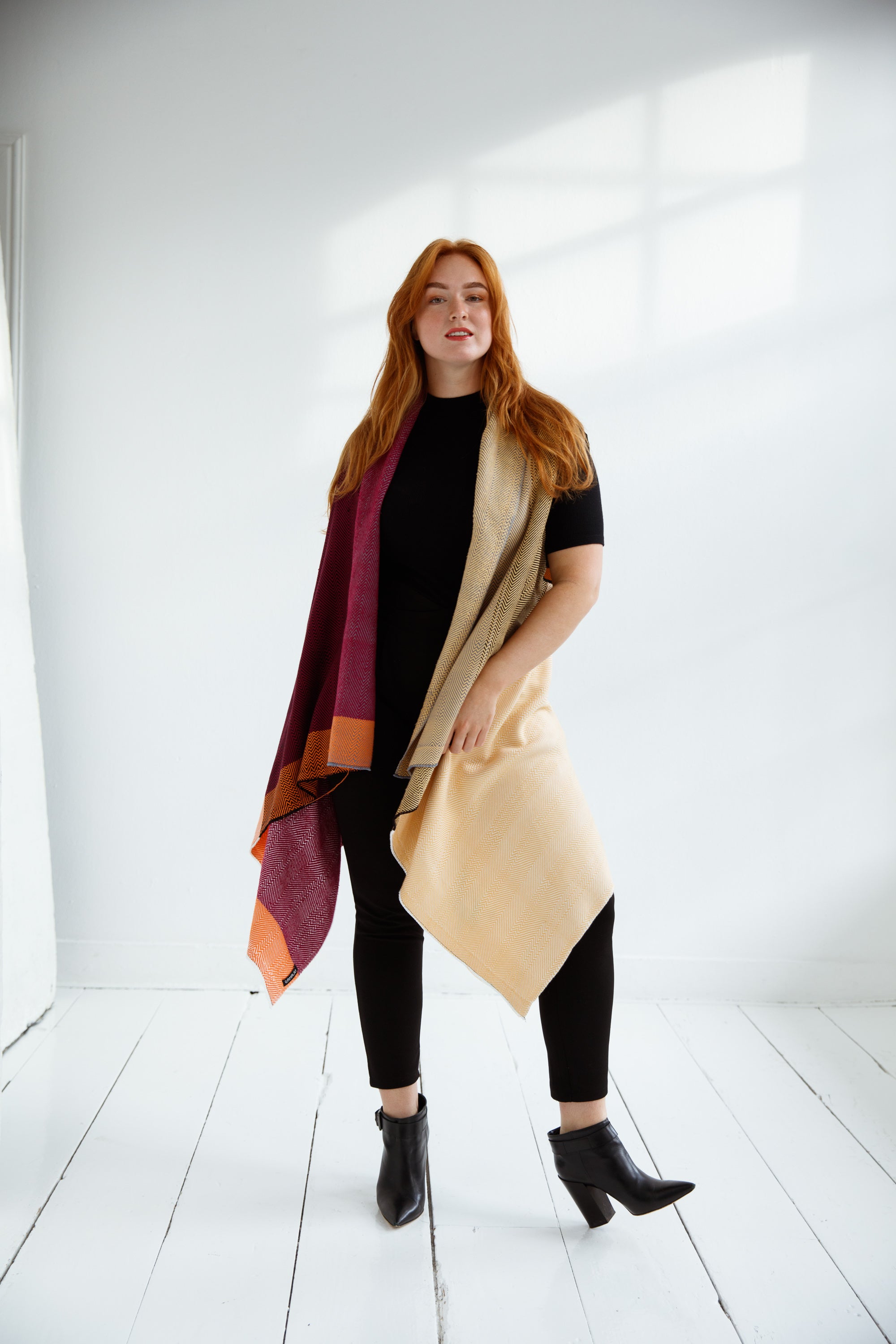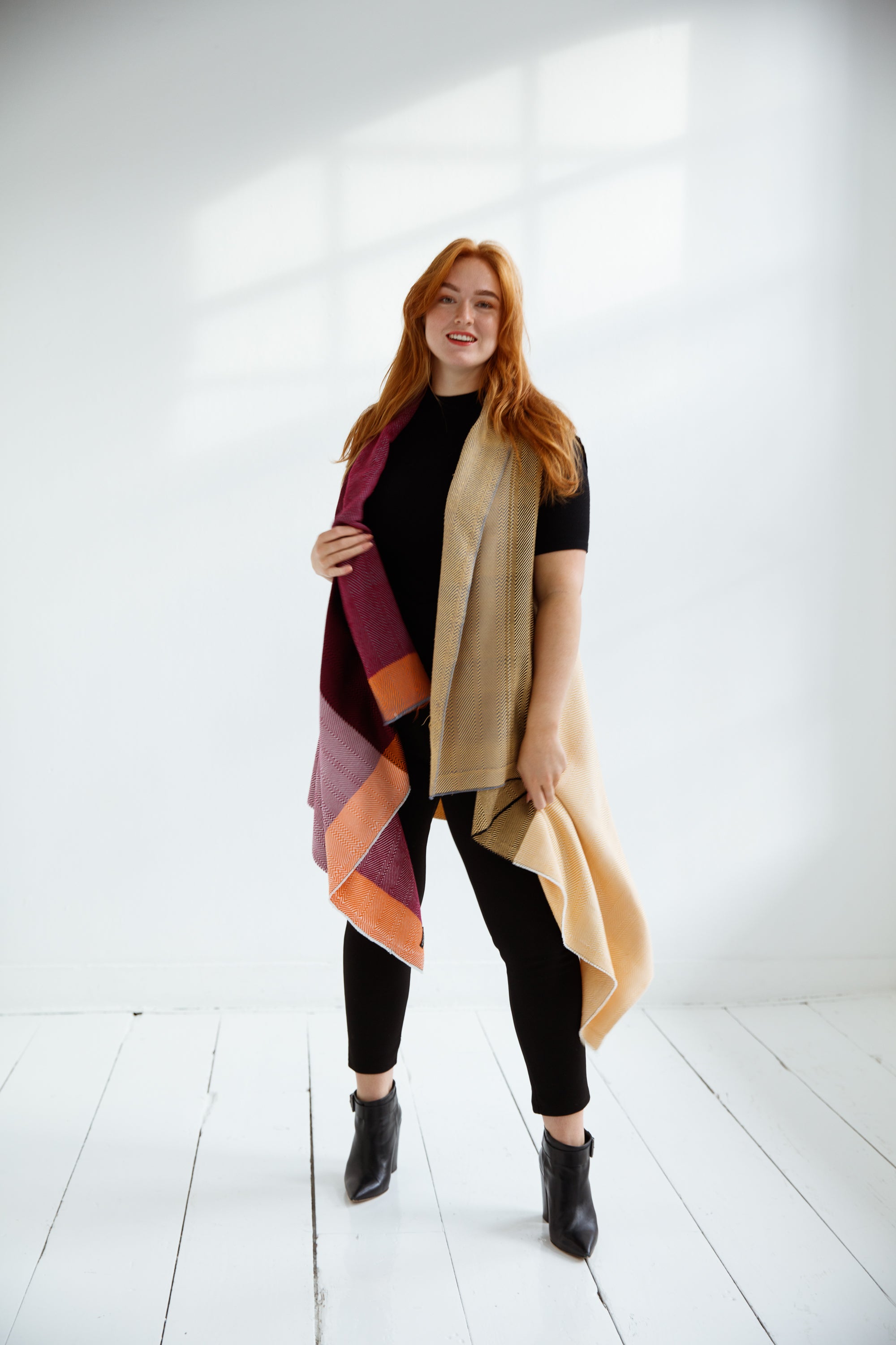 Our Product Guide makes it easy. Inside, you’ll find details on our signature pieces—kimonos, boleros, capes and more—along with clear sizing guidance (Standard, Petite and Plus) and insights into the natural, handwoven materials we use.