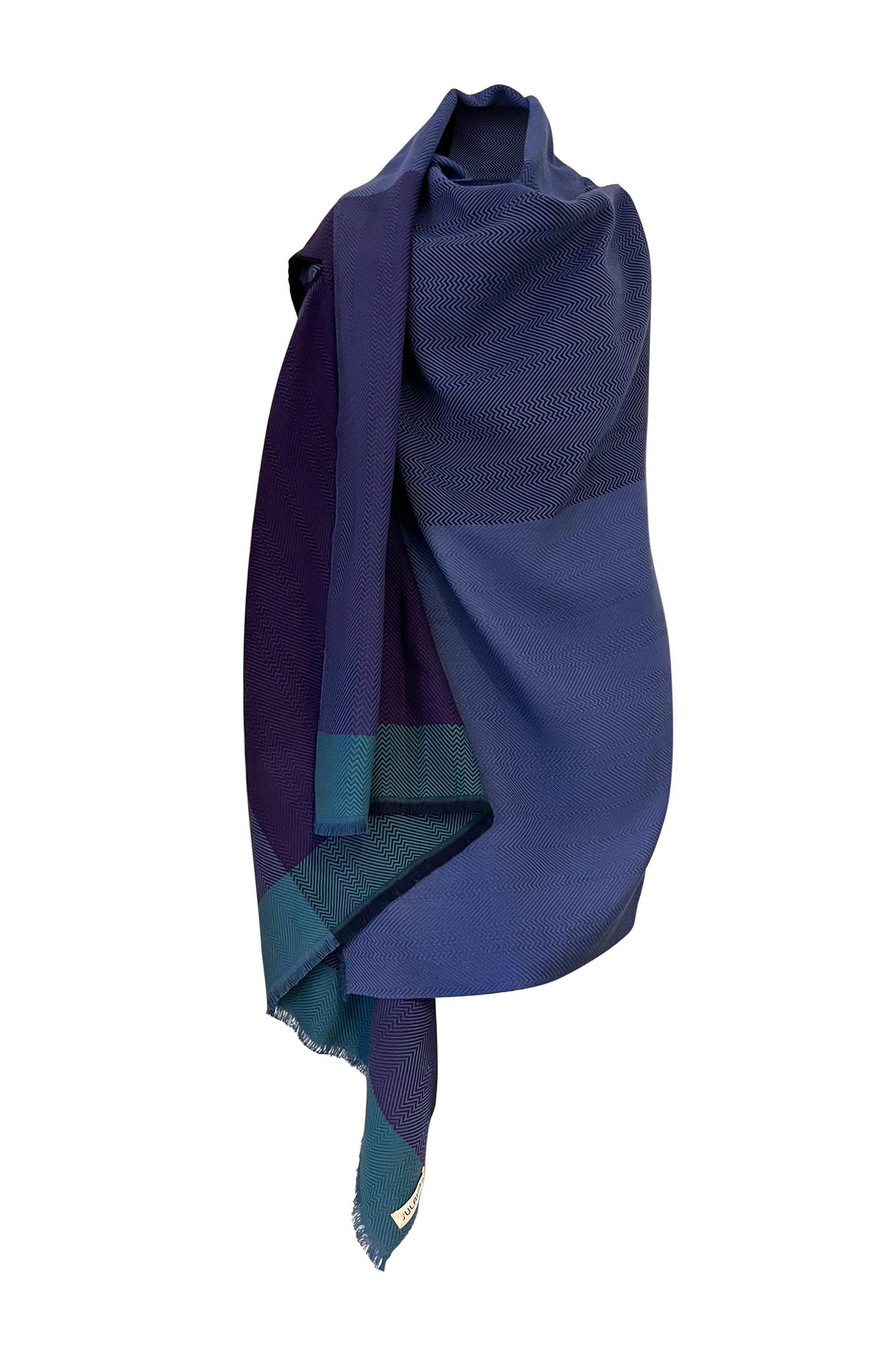 Versatile and free-size, it can be styled in 15+ ways — wrapped, belted, as a dress, or even a hoodie — letting you play with moods and silhouettes. With its bold mix of dark blue, bright blue, lime green, plum, and rust orange, this cape brings colour and vibrancy to everyday dressing.