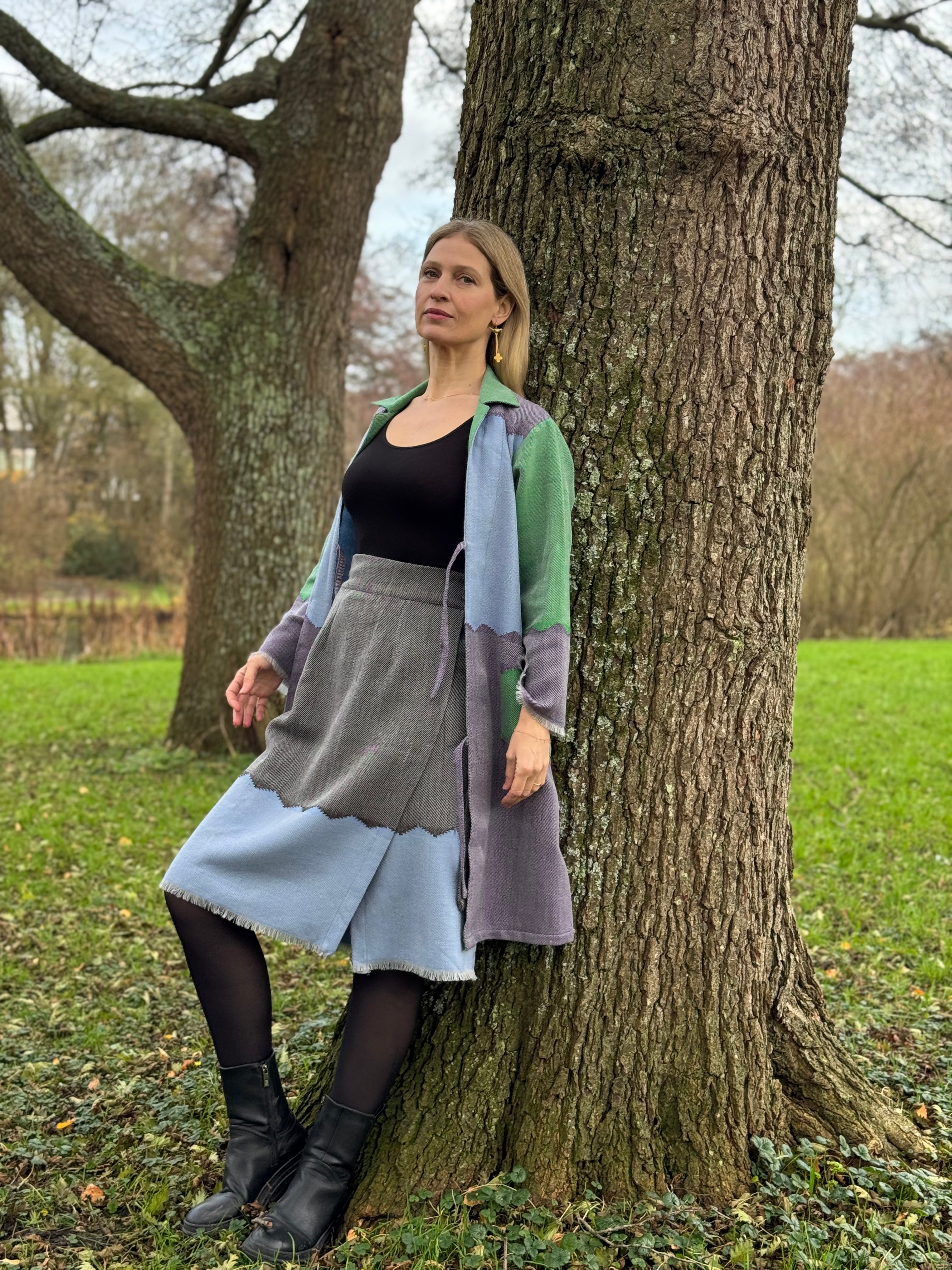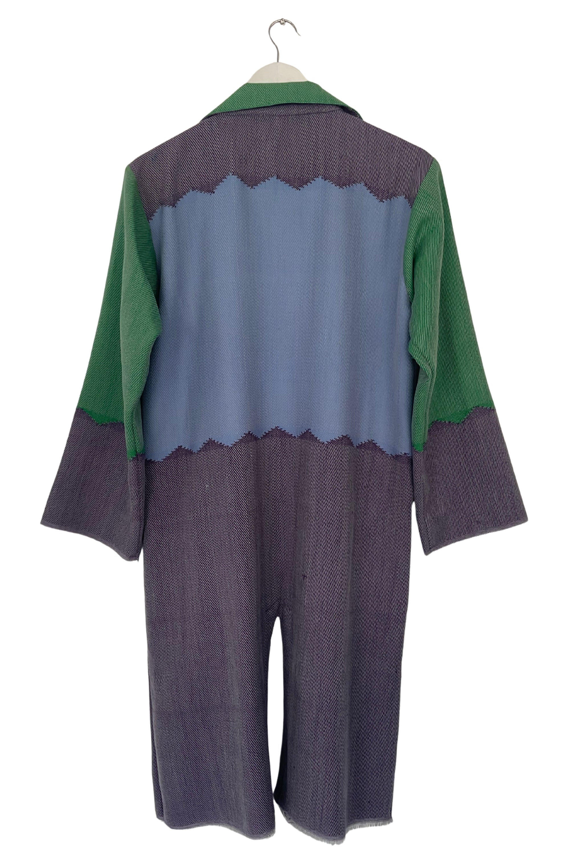 This piece from our capsule collection Aranya (Julahas X EAST) is designed by Easternlight Zimik in Ukhrul, Manipur and handwoven on a wooden loom by our partners at Pyoli in Mandi, Himachal Pradesh. From loom to silhouette — Aranya is a celebration of handwoven craft, nature, and abundance.