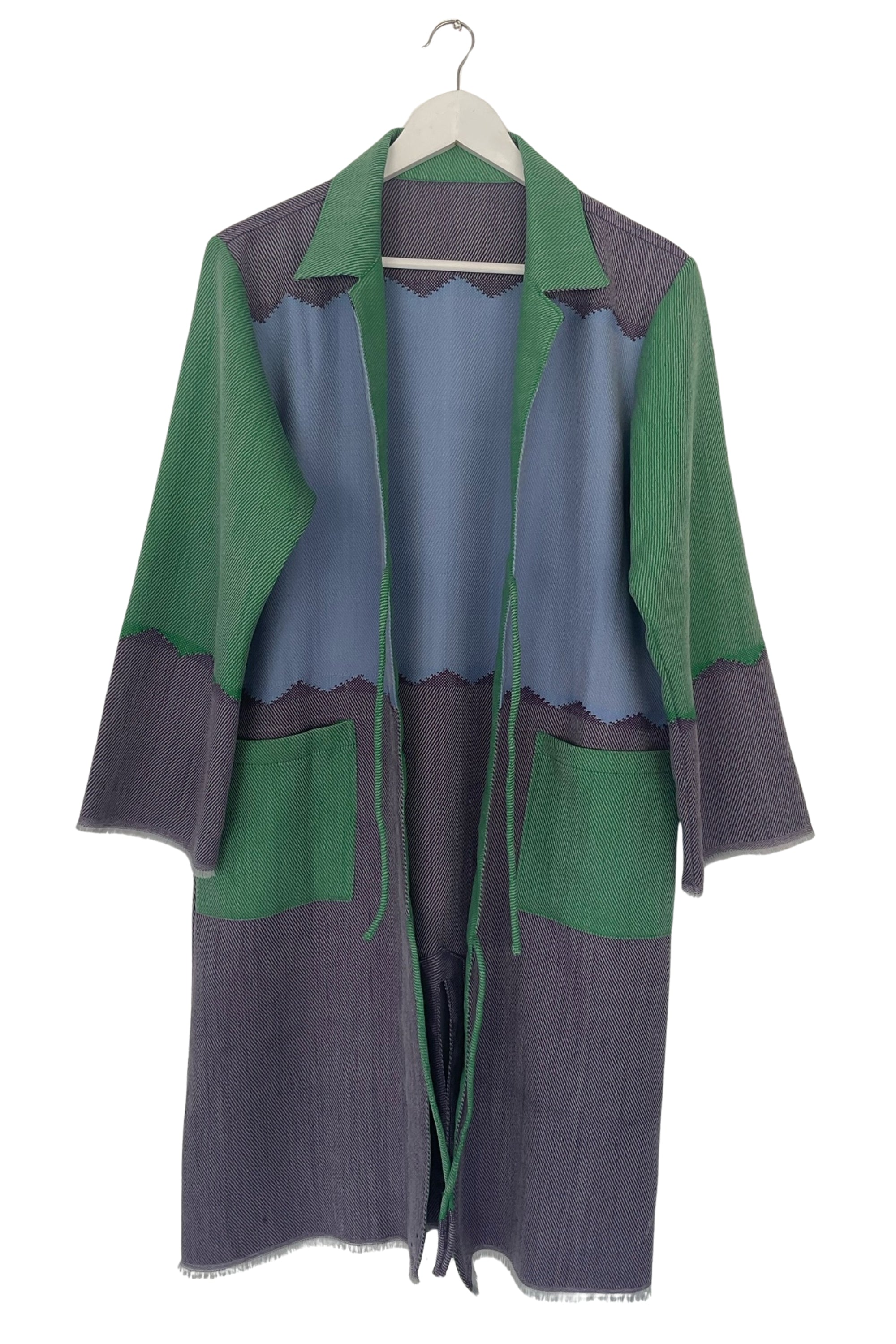 Our Himalayan Mist open-front lapel jacket is finished with front ties that allow the silhouette to be styled open or gently shaped at the waist. Relaxed yet structured, it brings versatility and ease to everyday dressing. Can we paired with our Himalayan Mist Lungi Wrap Skirt.