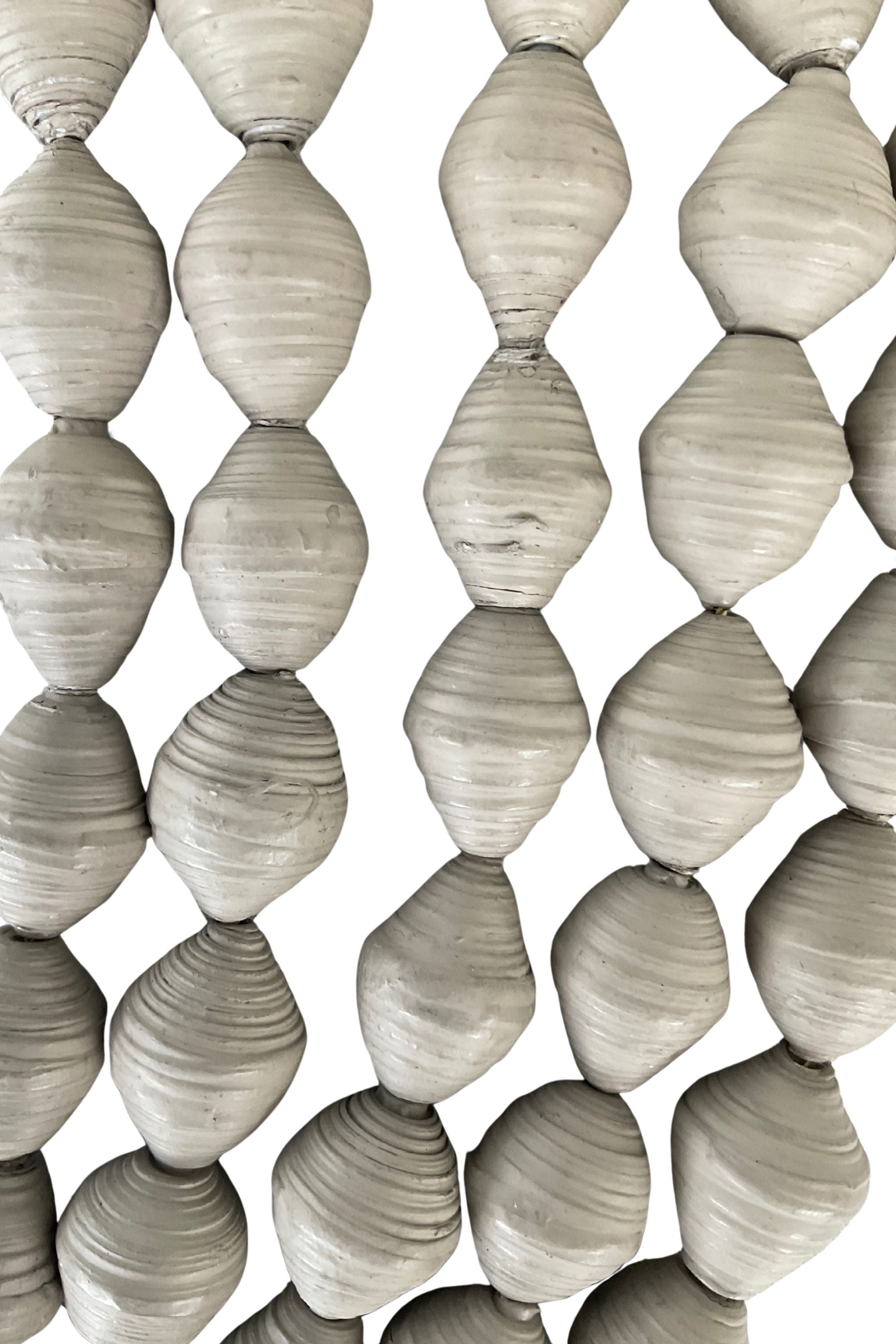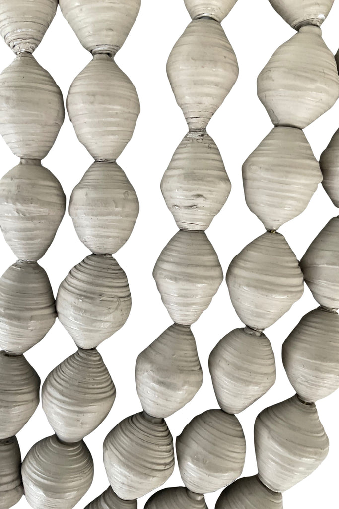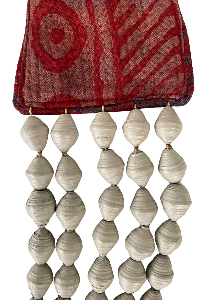 • Material: Handrolled and handpainted paper beads with fabric ties.
