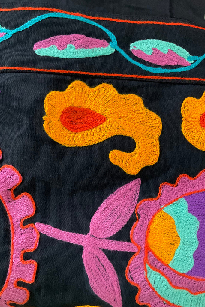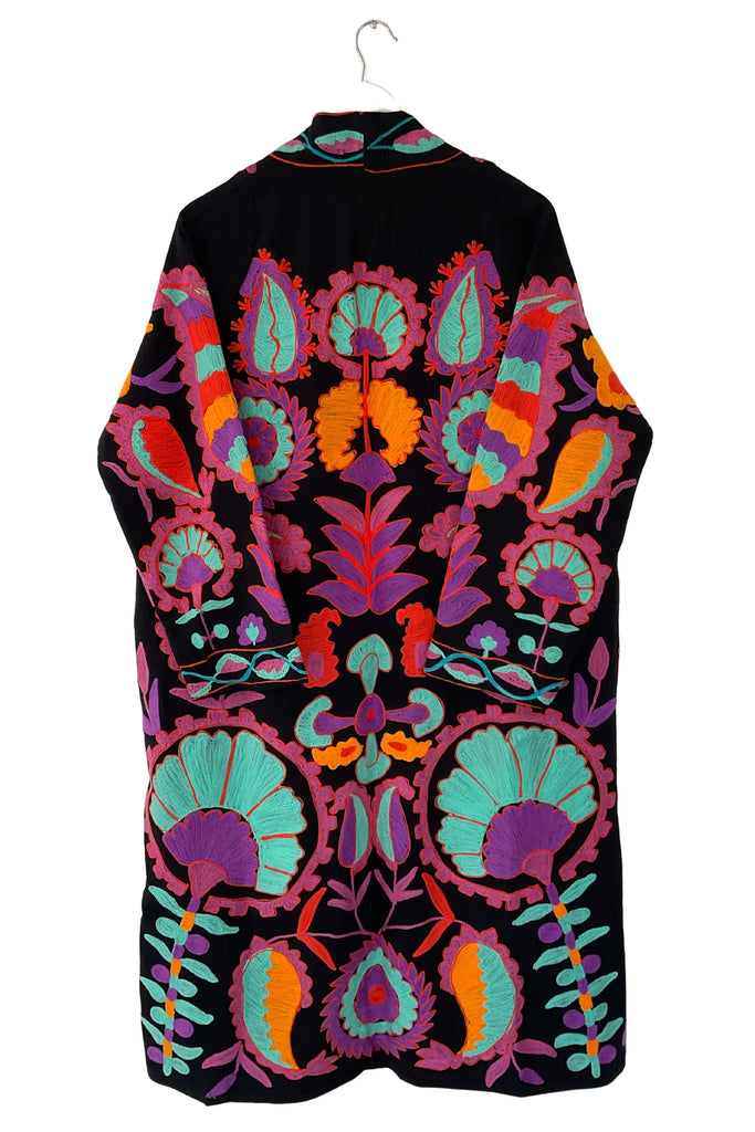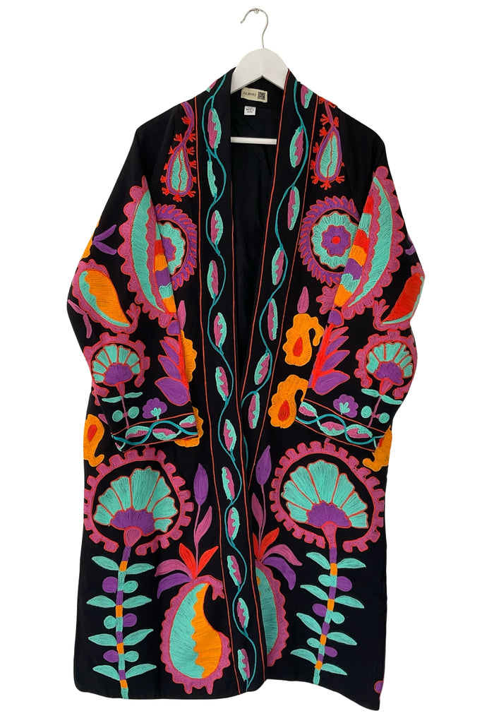 Rooted in heritage, Suzani—meaning “needle” in Persian—is an ancient embroidery tradition from Central Asia that traveled to India, where artisans perfected its signature chain stitch to form vivid floral motifs. Every duster is one of a kind, celebrating the beauty of handmade imperfection and the timeless story of a craft passed down through generations.
