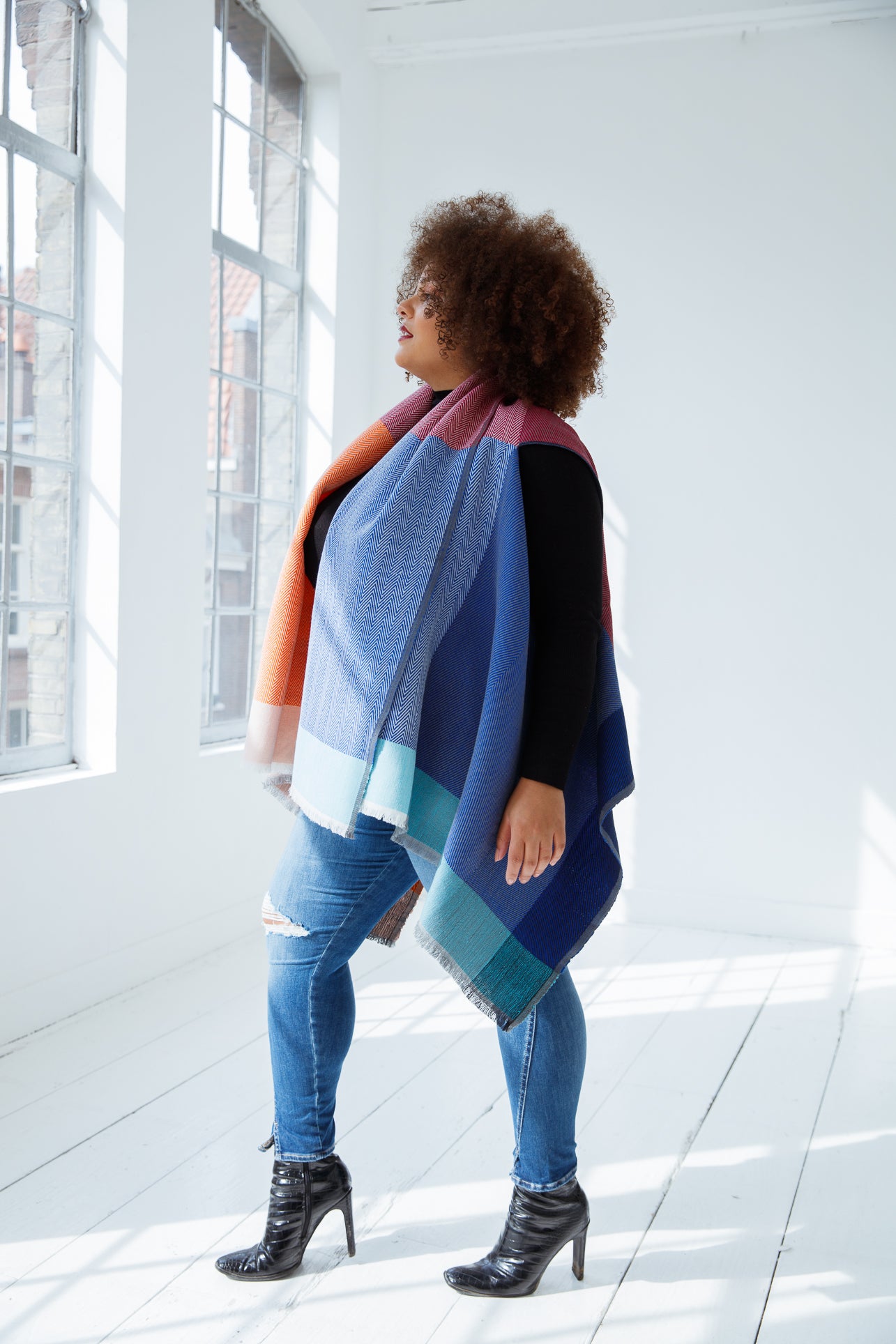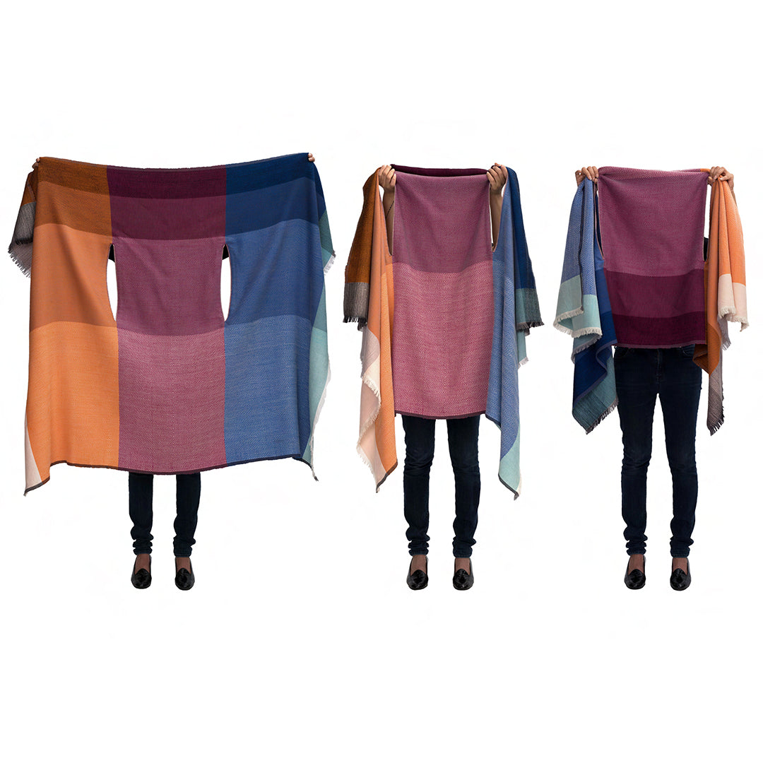 Handmade in small batches by Dev Bhumi artisans in the Himalayas, it is dyed with toxic-free colours and woven through a zero-waste process. Blending modern European design with traditional handloom craft, every Ganges cape is timeless, sustainable, and one-of-a-kind.