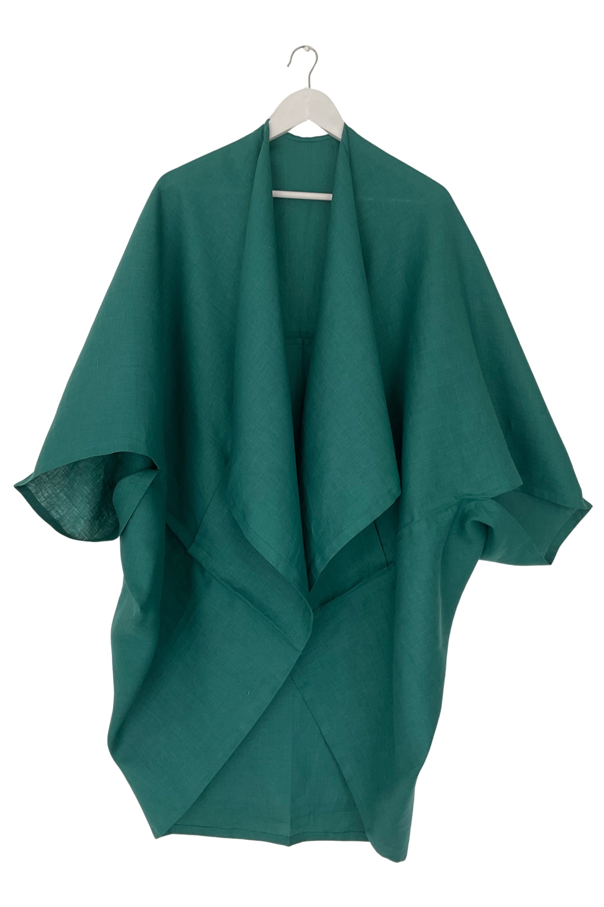 Drape yourself in our airy yet substantial single-layer Linen Kimono. Lightweight (60 lea) with spacious pockets, it is designed for year-round wear — the perfect travel companion or stylish layering piece.