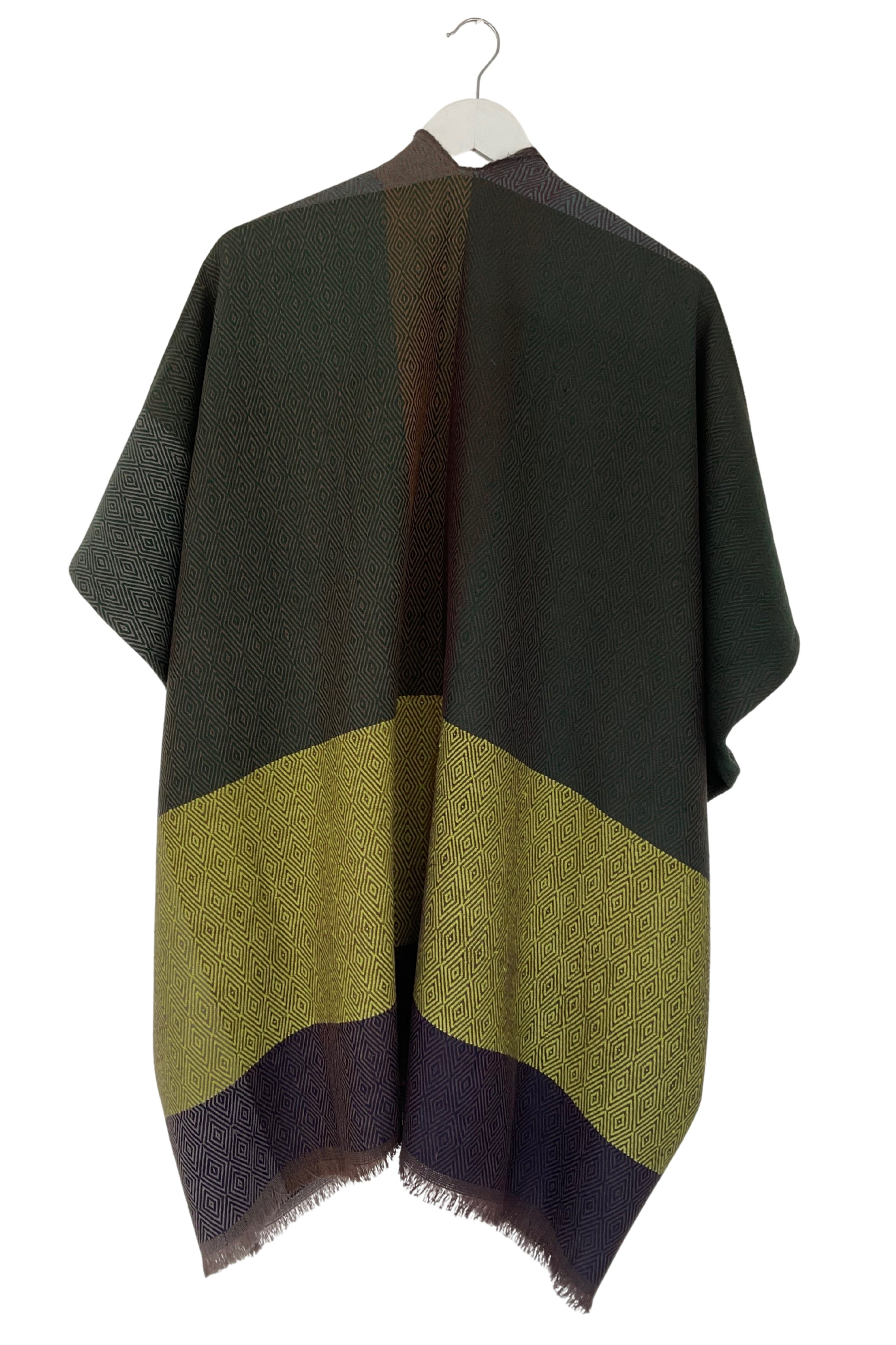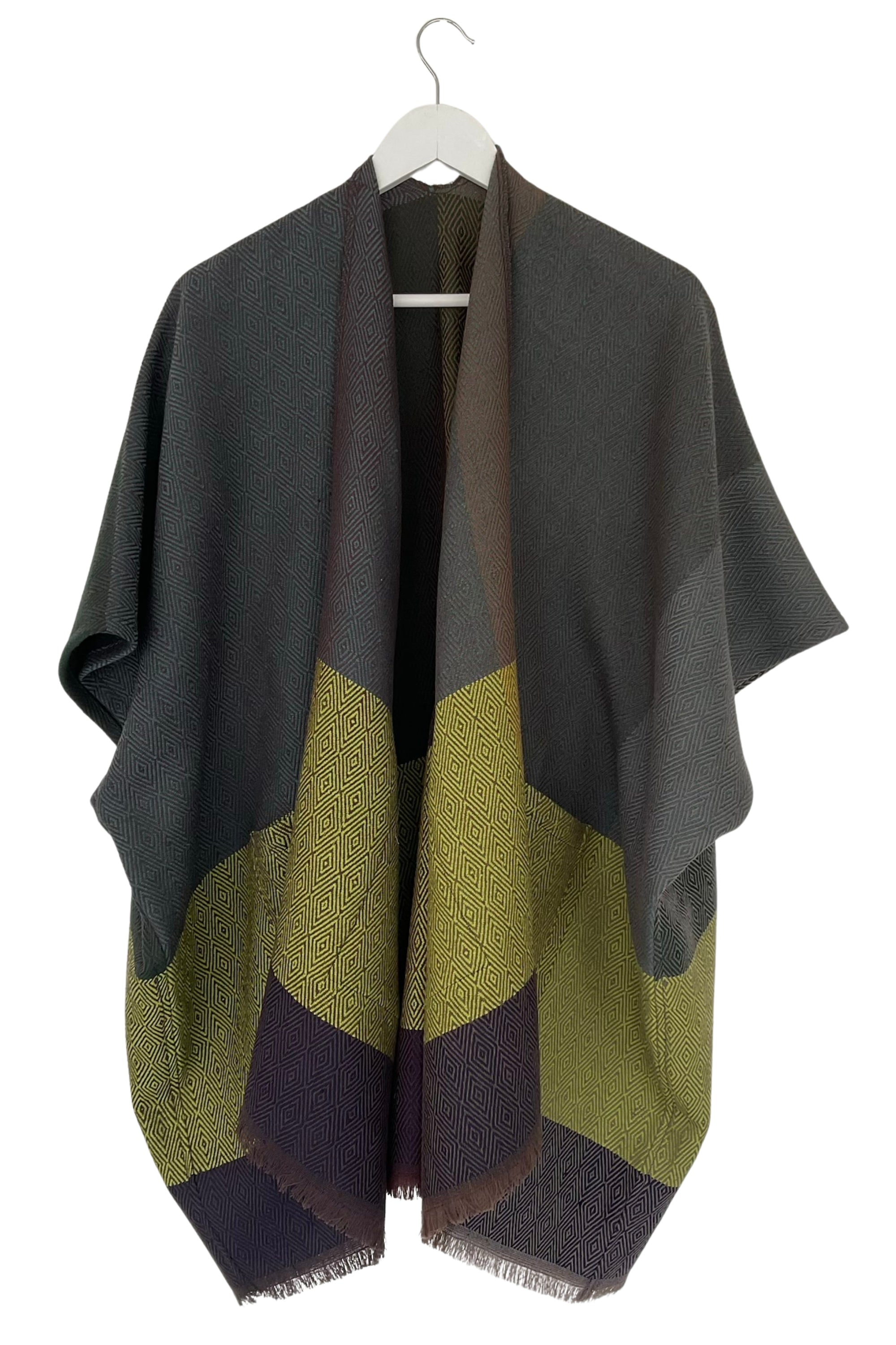Designed as a free-flowing, open-front poncho, with free size armholes, the Trudi drapes beautifully over the shoulders, offering effortless layering, comfort, and style. Each one-of-a-kind piece is free size, celebrating individuality and craftsmanship.
