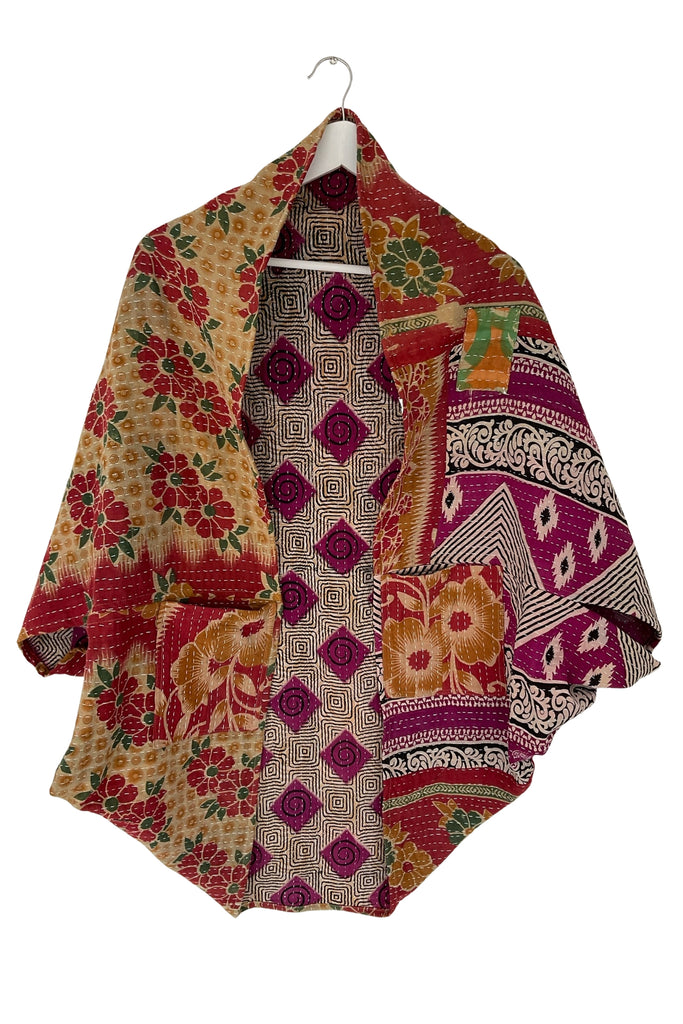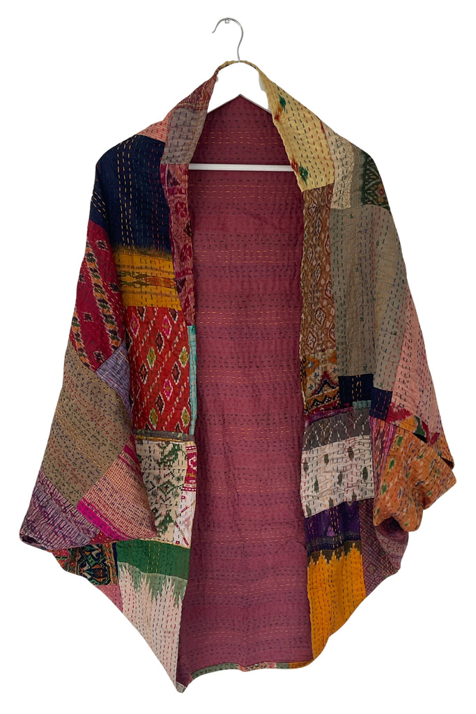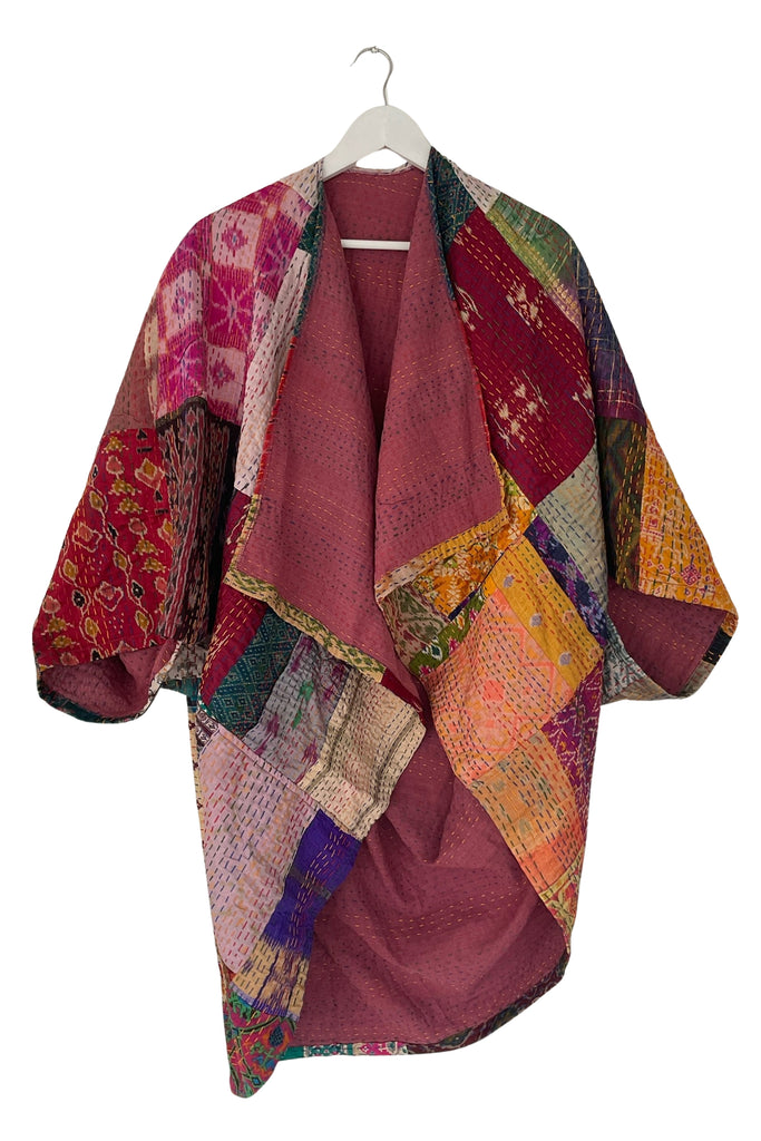 Our one-of-a-kind Stories Collection uses vintage saris used whole or patched together by women artisans in Barmer, Rajasthan using a kantha stitch. Each piece is unique, carrying with it the story of the women whose sari it was, and of the one who patched it together.
