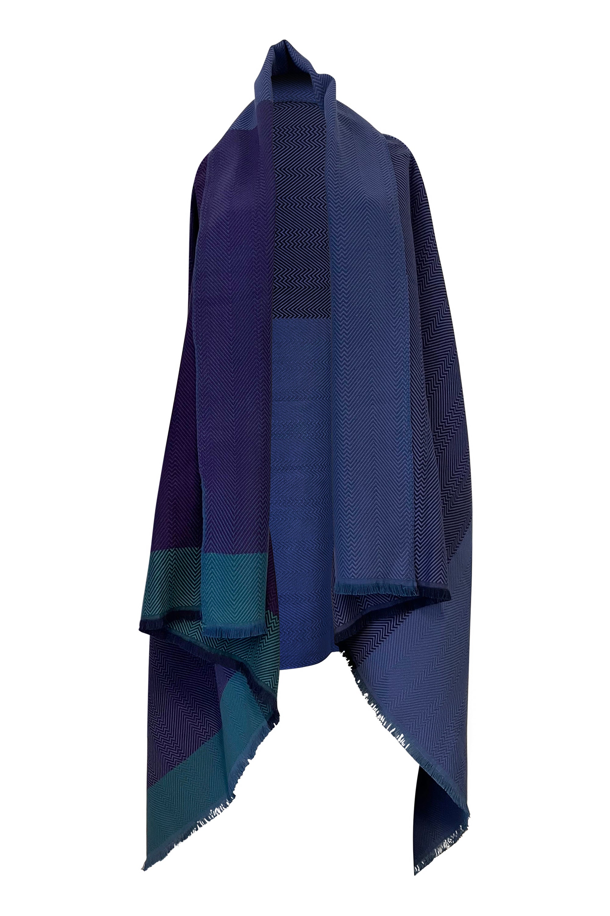 Versatile and free-size, it can be styled in 15+ ways — wrapped, belted, as a dress, or even a hoodie — letting you play with moods and silhouettes. With its bold mix of dark blue, bright blue, lime green, plum, and rust orange, this cape brings colour and vibrancy to everyday dressing.