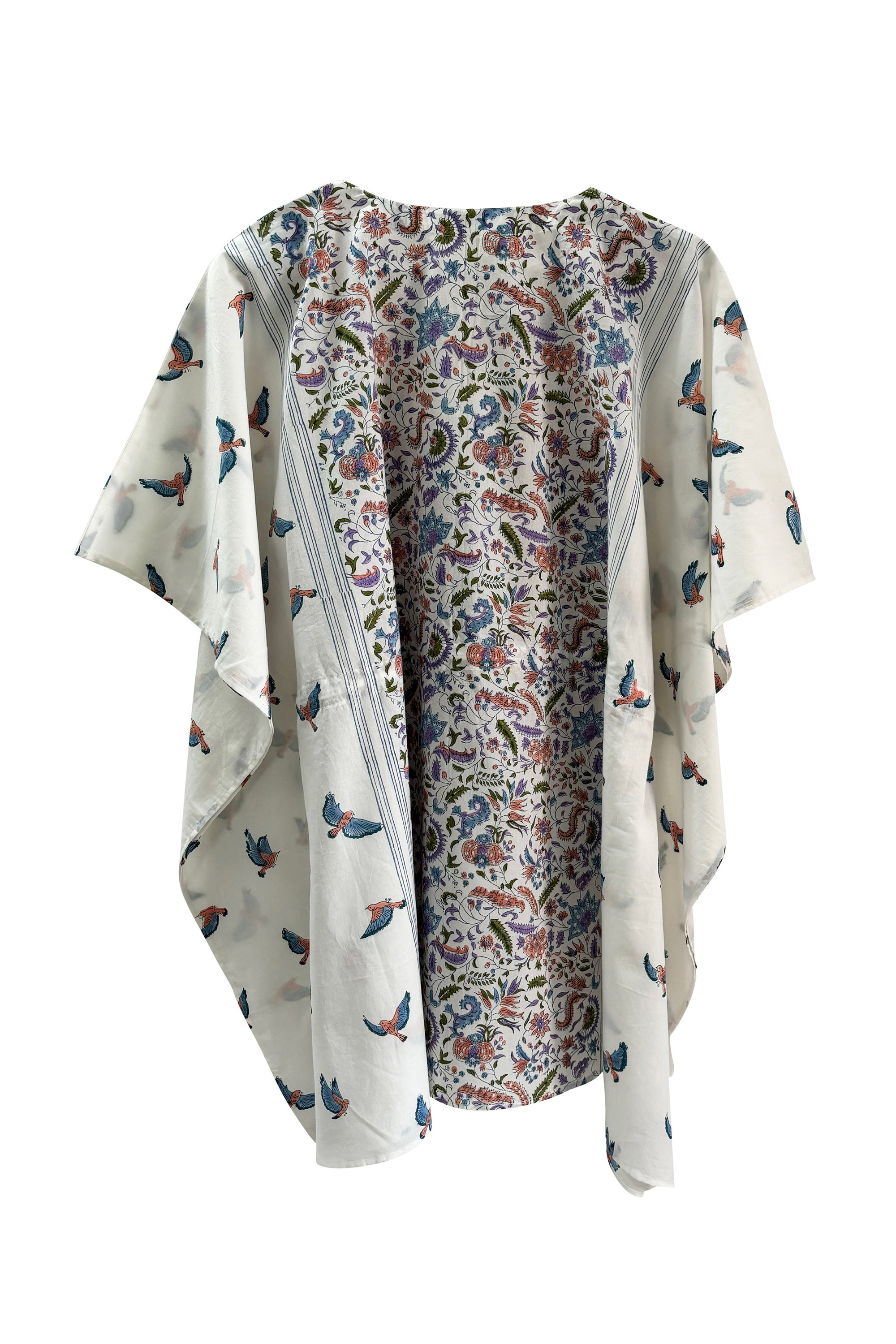 Our Product Guide makes it easy. Inside, you’ll find details on our signature pieces—kimonos, boleros, capes and more—along with clear sizing guidance (Standard, Petite and Plus) and insights into the natural, handwoven materials we use.
