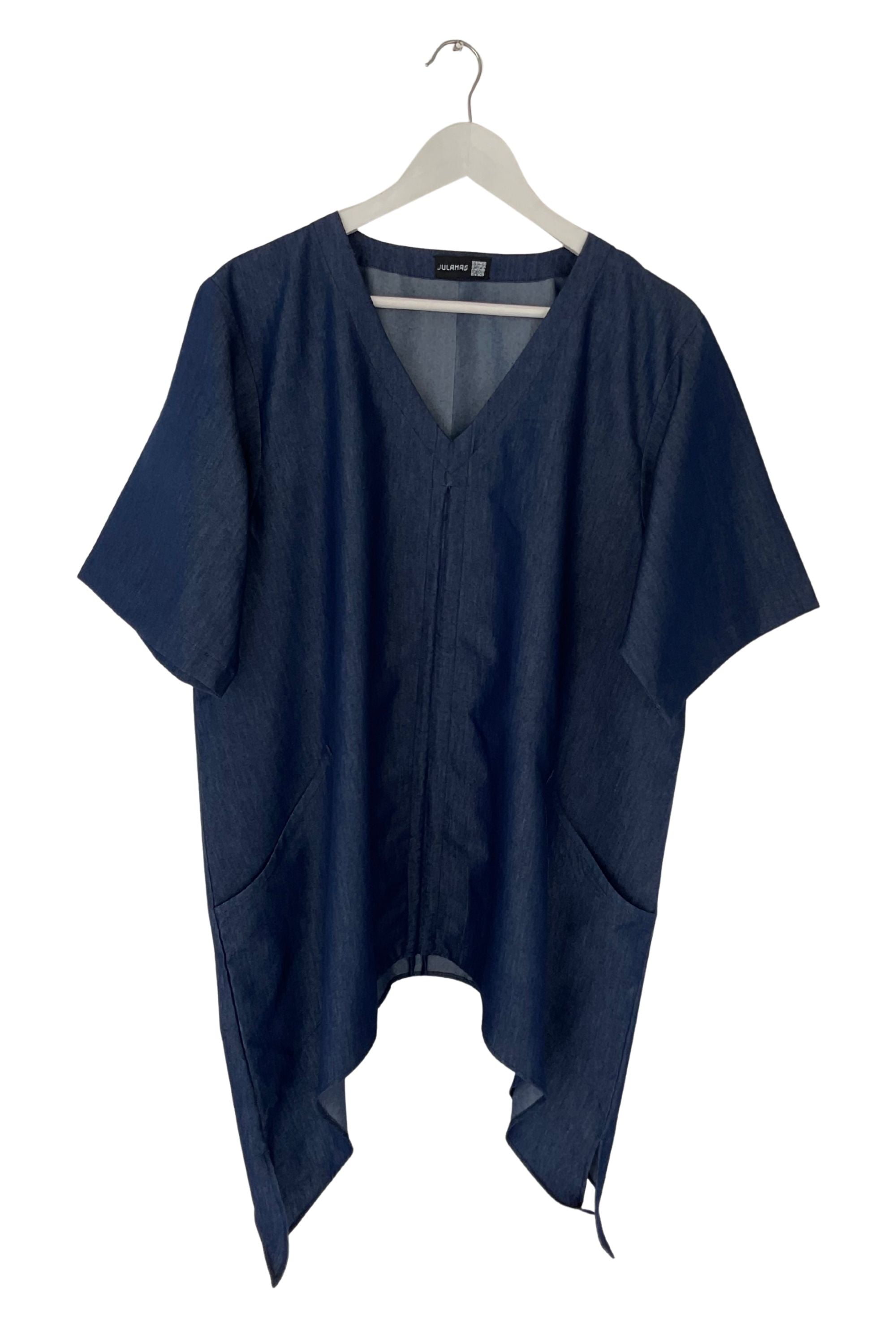 The DENIM TENCEL RUCHED TUNIC is an effortless blend of comfort, versatility, and understated style. Crafted from soft, breathable denim tencel, it features a relaxed silhouette with sleeves that fall just below the elbow and subtle ruching details that add shape without compromising ease.