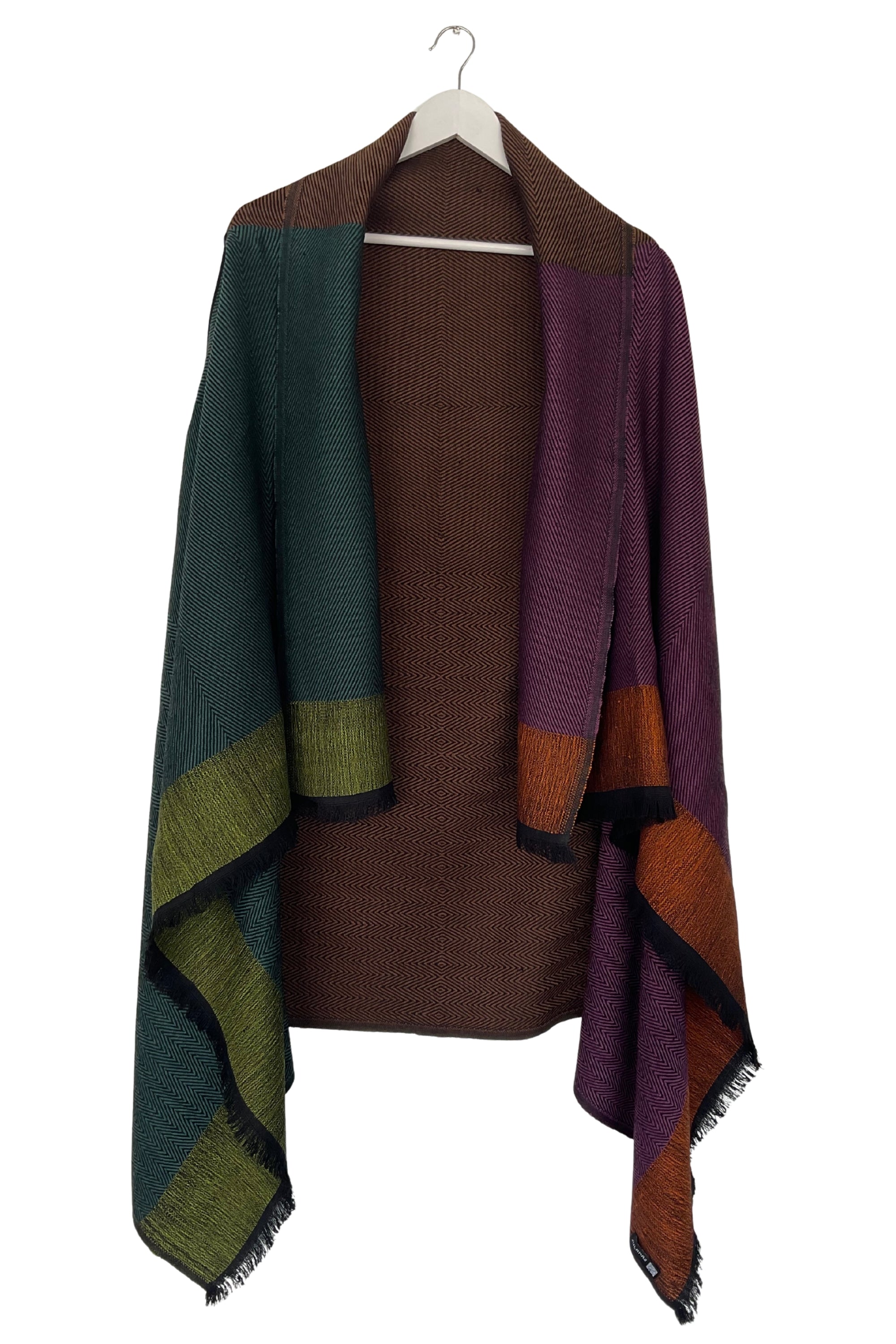 Handmade in small batches by Dev Bhumi artisans in the Himalayas, it is dyed with toxic-free colours and woven through a zero-waste process. Blending modern European design with traditional handloom craft, every cape is durable, sustainable, and one-of-a-kind.