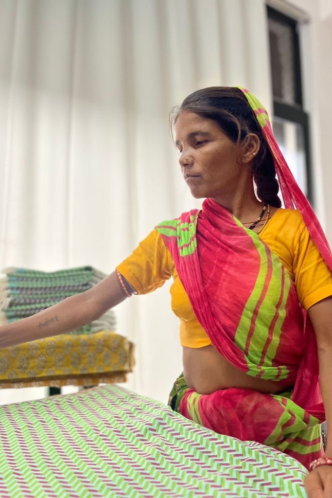 True to our ethos, the DOUBLE MUSLIN SCARF reflects our commitment to creating long-lasting pieces with a low carbon footprint and a high social impact. By choosing this scarf, you help provide meaningful work to artisans from remote villages in West Bengal and Jaipur, supporting their livelihoods and preserving traditional handloom and block printing techniques. We believe in empowering artisans and celebrating true craftsmanship, because every community has a beautiful story to tell—and your purchase helps keep that story alive.