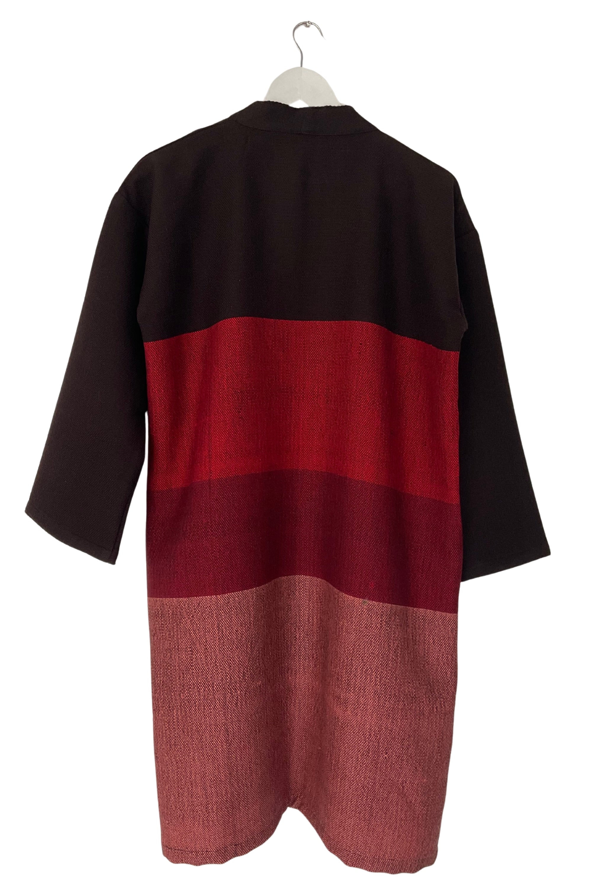 This piece from our capsule collection Aranya (Julahas X EAST) is designed by Easternlight Zimik in Ukhrul, Manipur and handwoven on a wooden loom by our partners at Pyoli in Mandi, Himachal Pradesh. From loom to silhouette — Aranya is a celebration of handwoven craft, nature, and abundance.