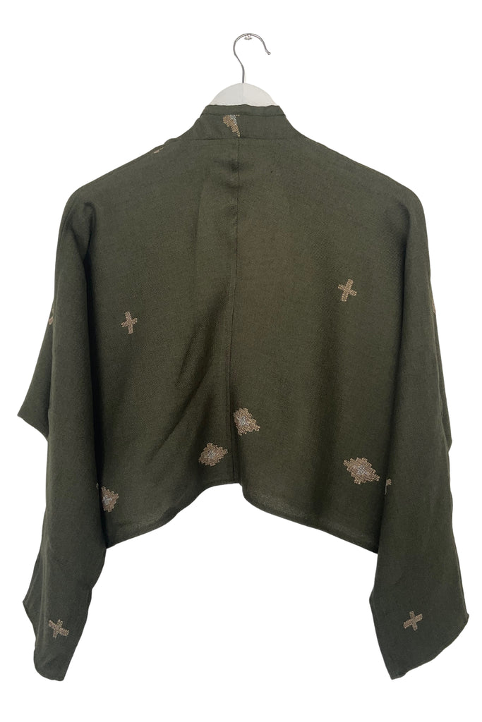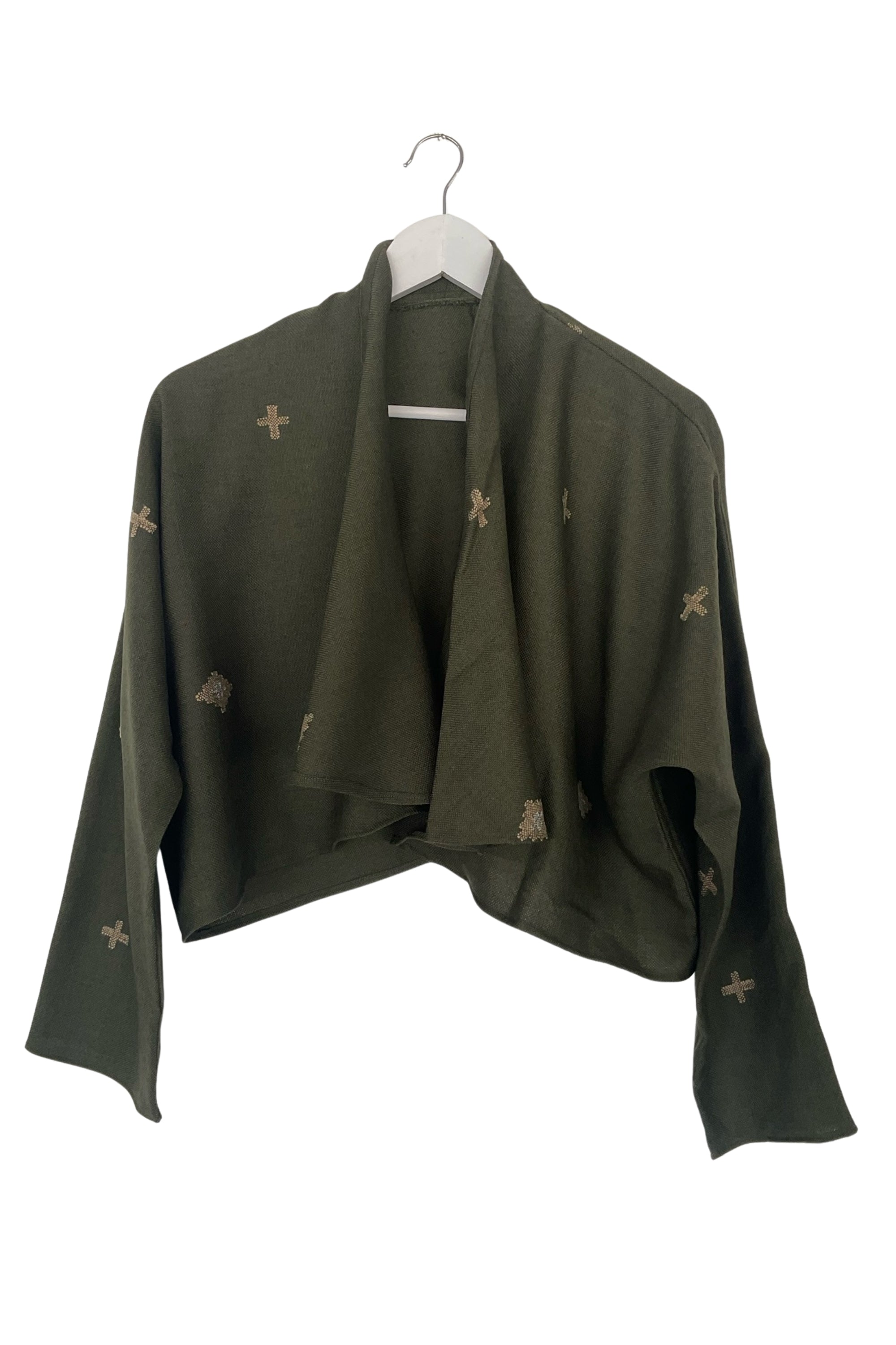 NEW! Long Sleeved Wool Waterfall Bolero Buti Olive