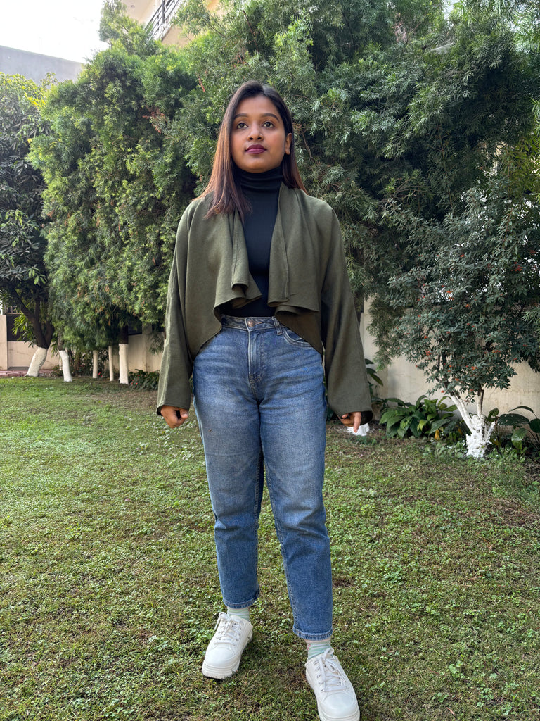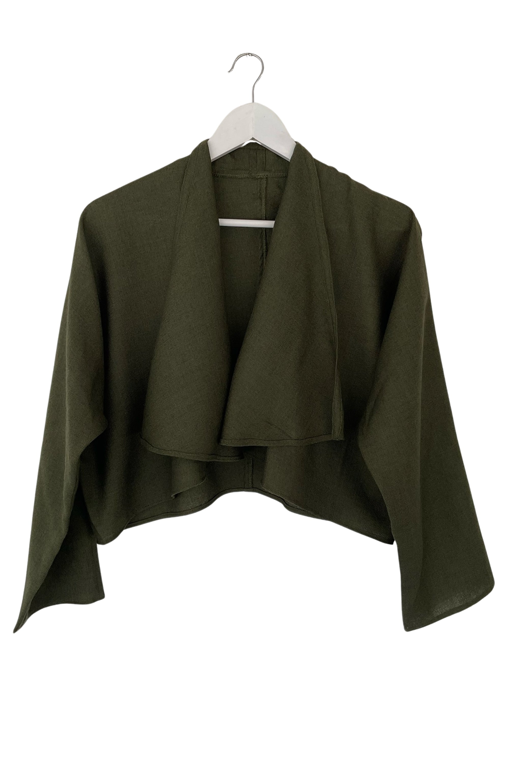NEW! Long Sleeved Wool Waterfall Bolero Olive