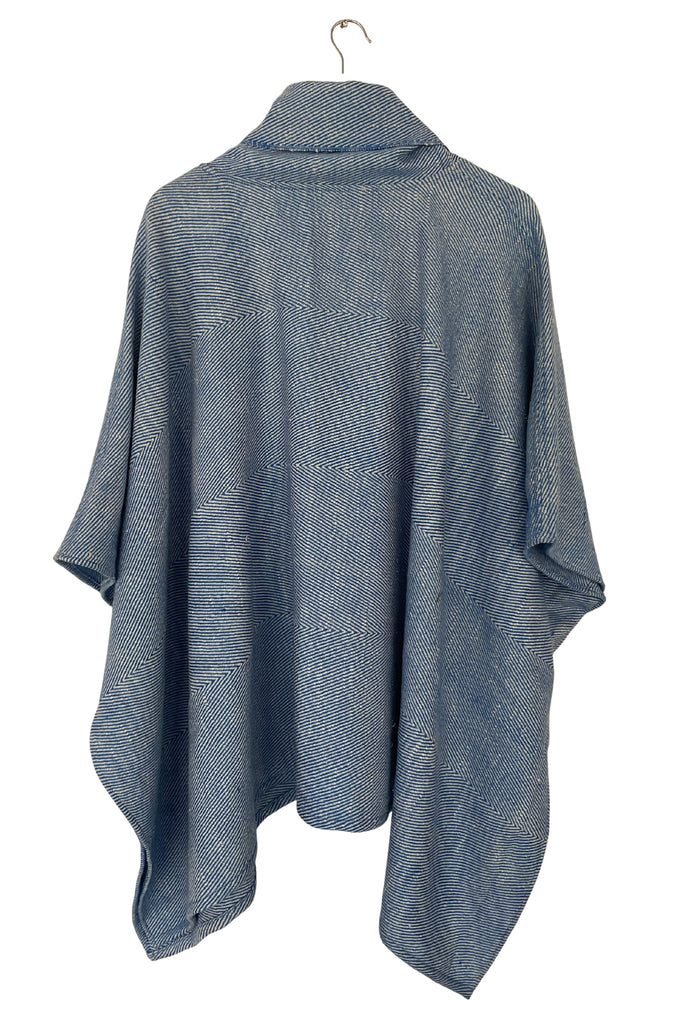NEW! Wool Silk Cowl Neck Poncho Light Blue