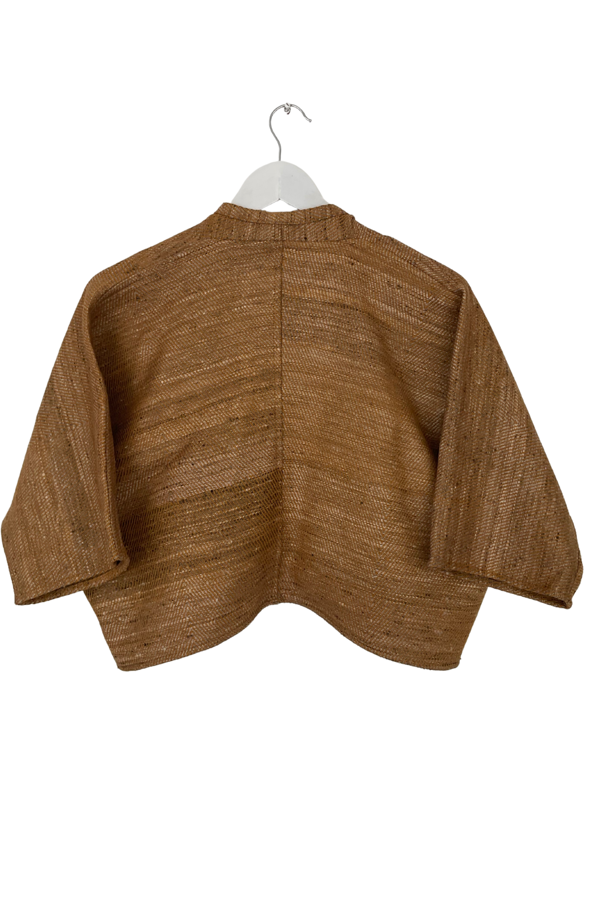 Using shaded textured yarn, the fabric gains a rich depth that enhances its surface appeal. Handcrafted in small batches by Bhuttico artisans in Himachal Pradesh, each bolero is woven on traditional looms using Woolmark-certified yarn and finished with care. Sustainable, durable, and modern — it’s designed to last.