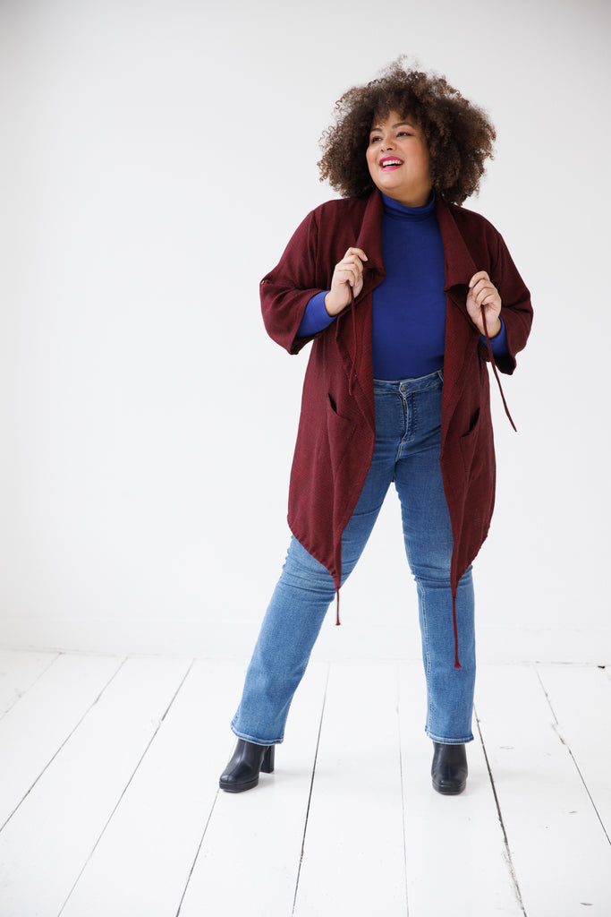 Our Product Guide makes it easy. Inside, you’ll find details on our signature pieces—kimonos, boleros, capes and more—along with clear sizing guidance (Standard, Petite and Plus) and insights into the natural, handwoven materials we use.