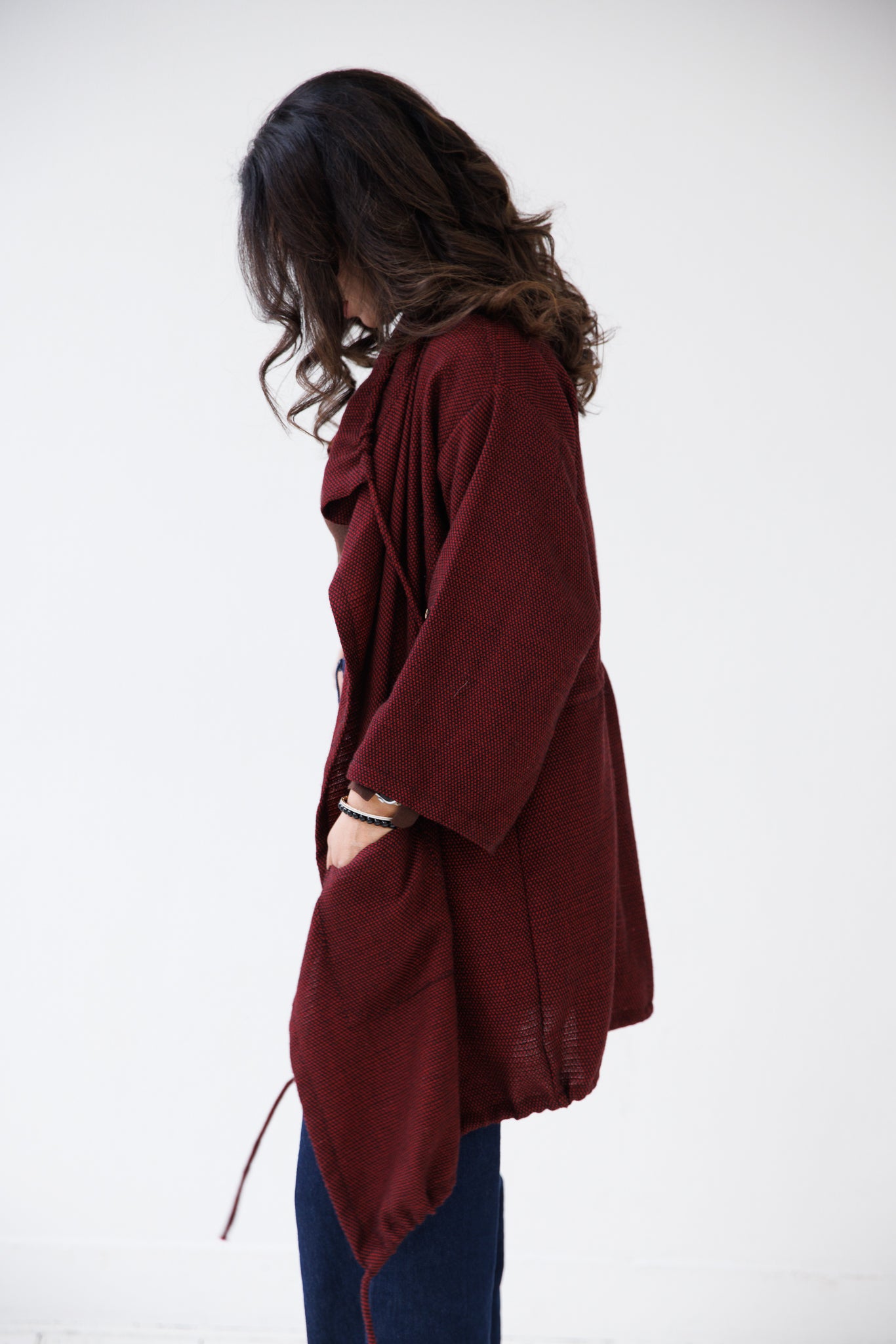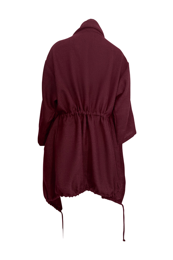 The WOOL DRAWSTRING OVERLAY HONEYCOMB is the perfect balance of comfort, functionality, and timeless design. Crafted from natural Woolmark-certified fibers, it features adjustable drawstrings at the top, waist, and hem, allowing you to create multiple silhouettes, from structured to flowy. Designed with rolled-up sleeves and practical pockets, it’s both versatile and refined.